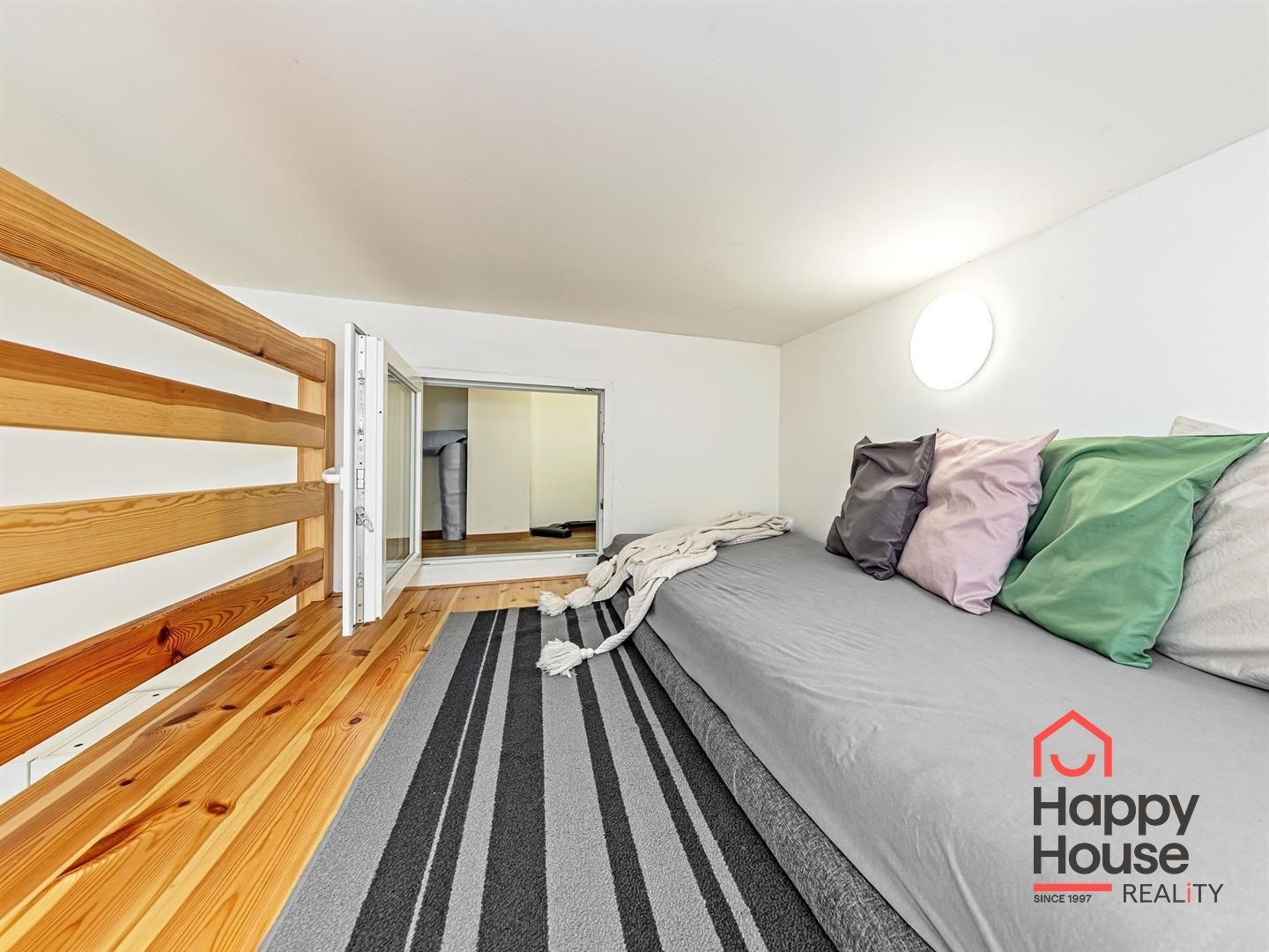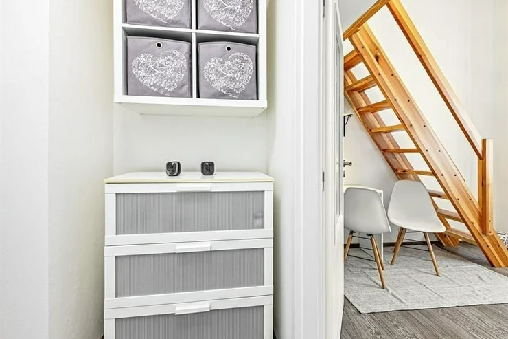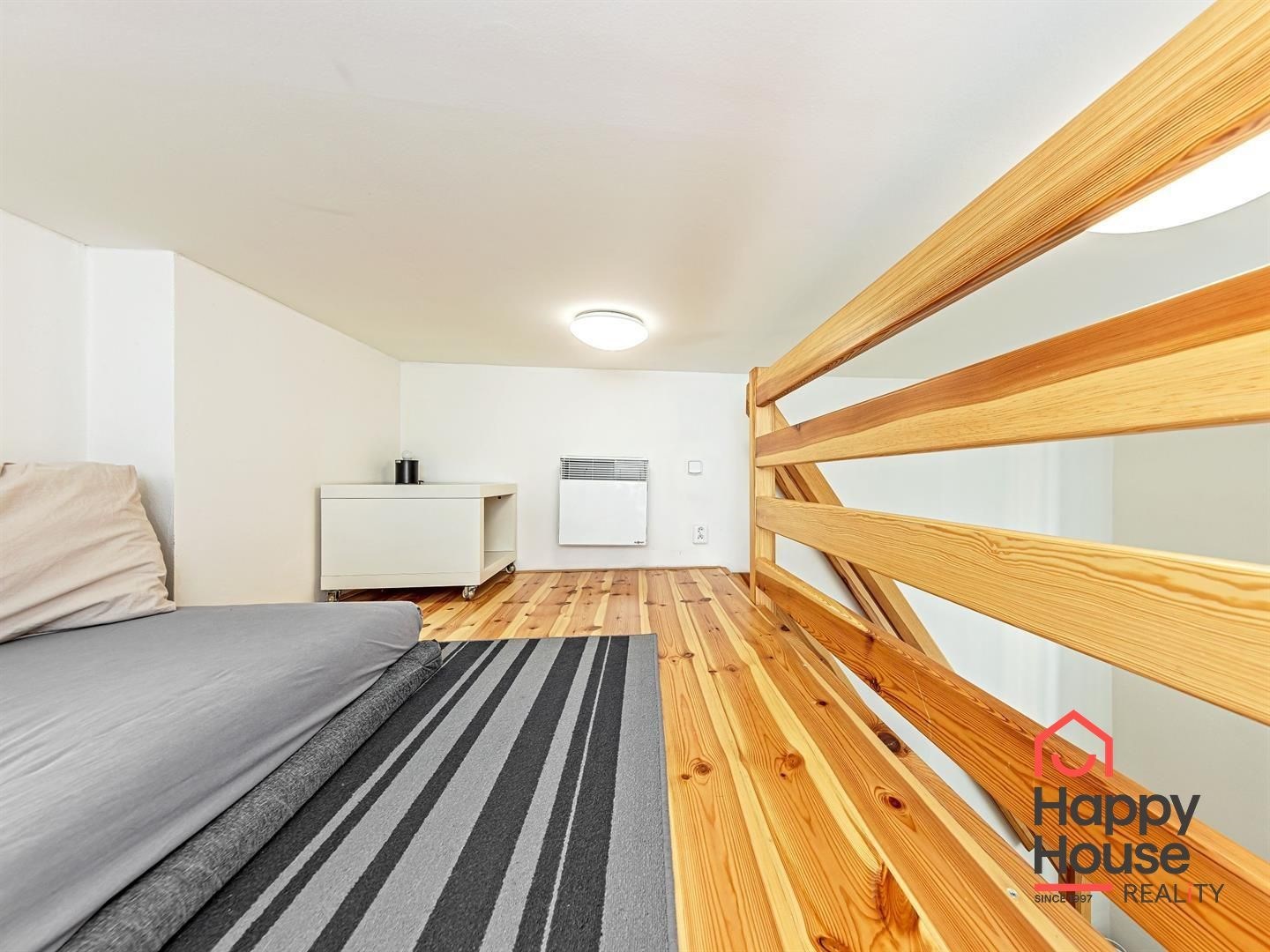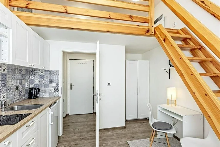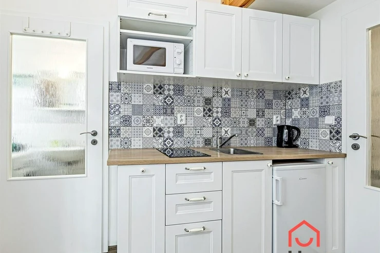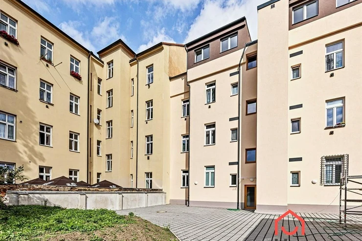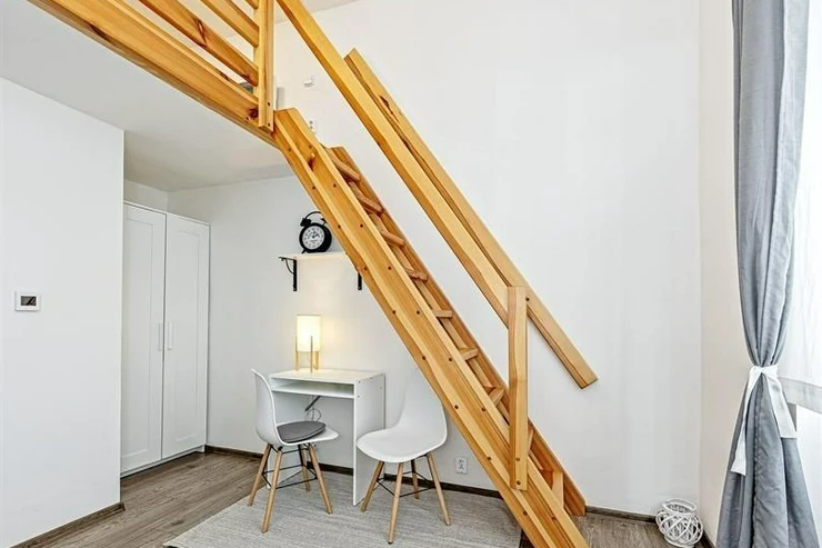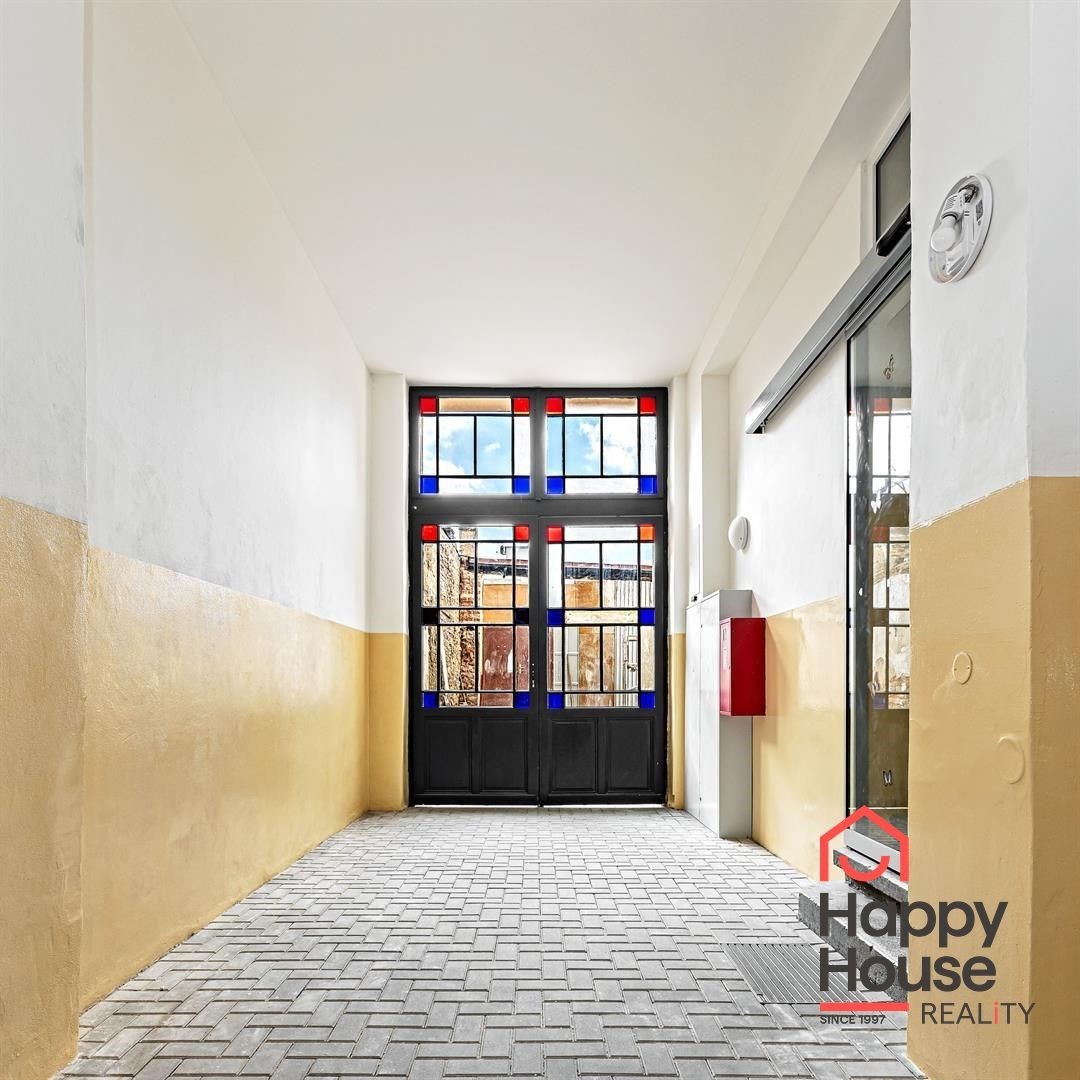 We exclusively offer for rent a spacious, fully furnished studio apartment, located on the elevated ground floor of a renovated brick building in the popular area of Prague 8 in Libeň. The kitchenette includes a kitchen unit, induction double hob, microwave, and refrigerator. The bathroom is equipped with a shower, a heated towel rail, and a washing machine, with a separate toilet. The bed is cleverly situated on a mezzanine, where there is also storage space and a boiler. Vodafone and O2 services are available in the building. There is underfloor heating under the tiled floors. Direct heating available. A cellar is also included. The apartment overlooks a quiet courtyard with mature greenery to the southwest. Street parking - zones.