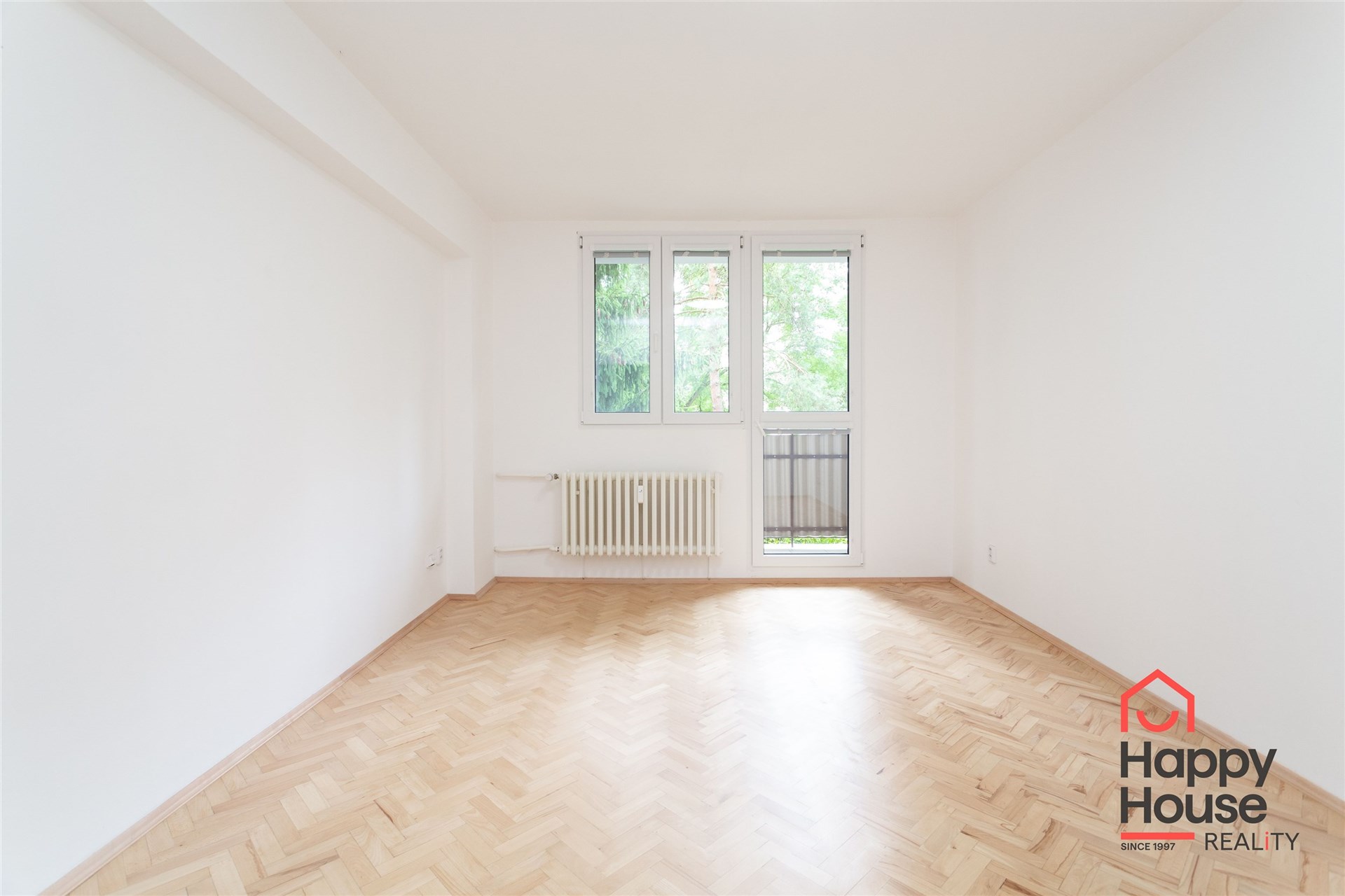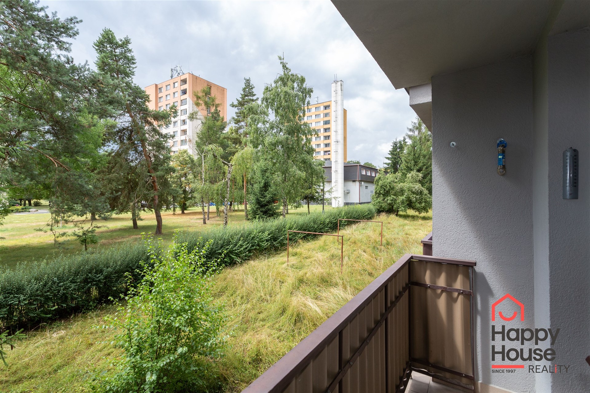 • View from the apartment to two world sides. The living room and small room face north to the street and the bedroom with balcony faces south to a quiet courtyard