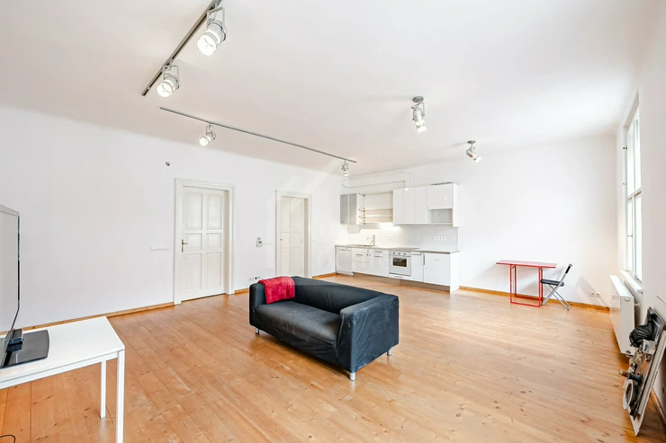 Exclusively offered for rent is a bright 2-room apartment (2 + kitchenette) with a total area of 70 m², featuring a balcony, cellar, and the option of garage parking, located on the 4th floor of a brick building in a prime location in Prague 6, Bubeneč. The apartment provides a peaceful living environment with a view of the inner courtyard from the bedroom, while the living room window faces the street.