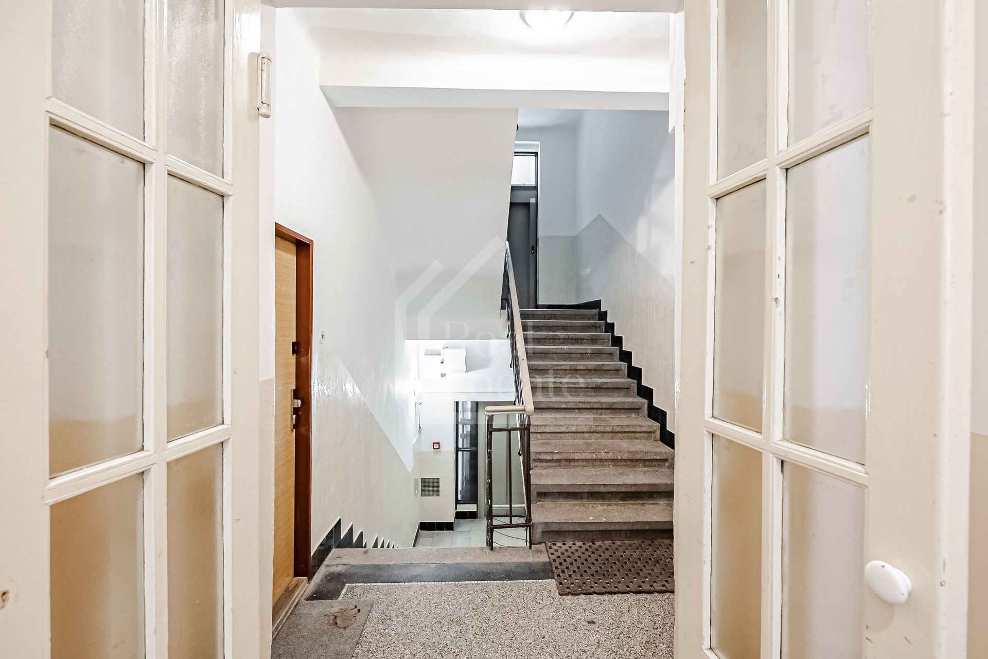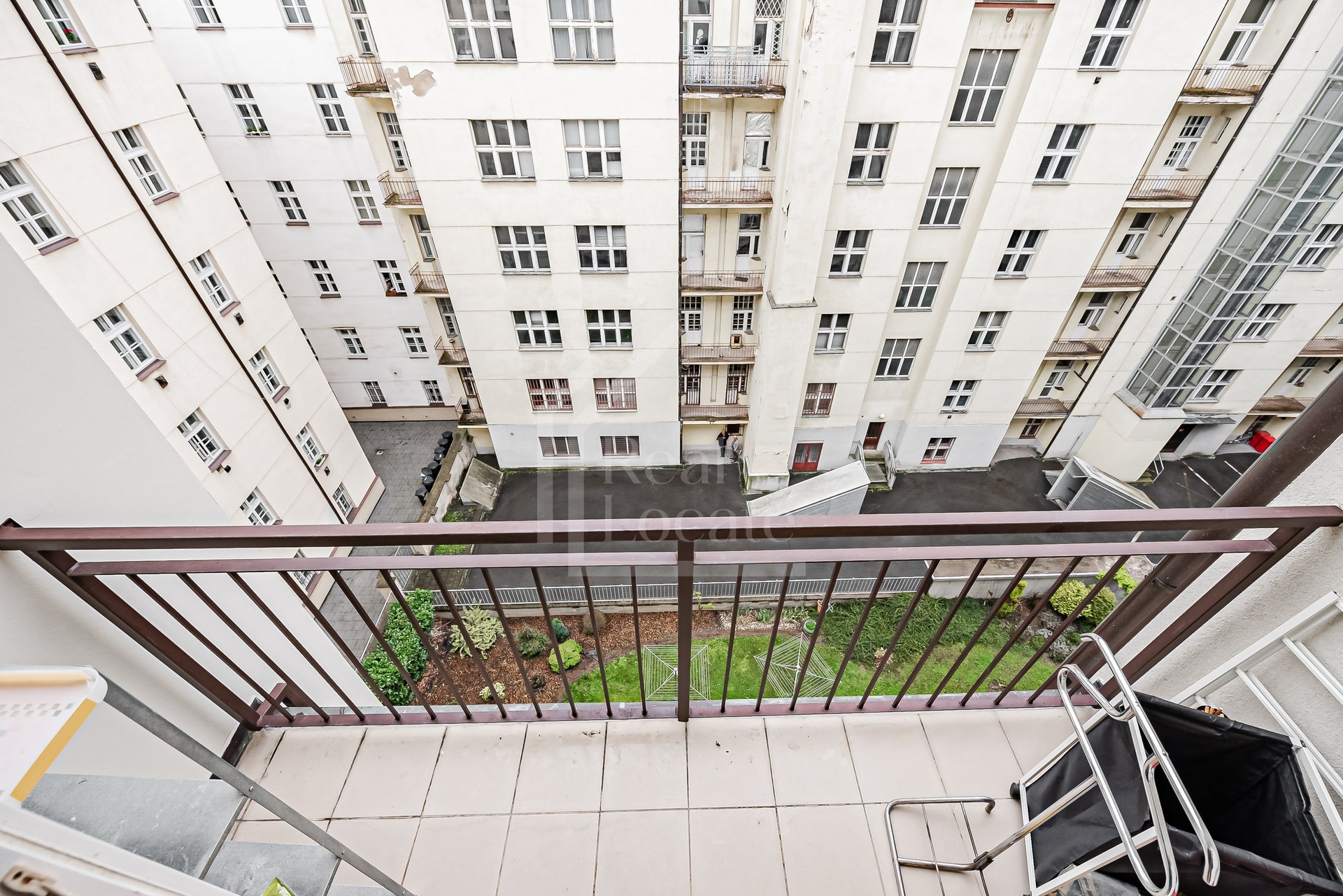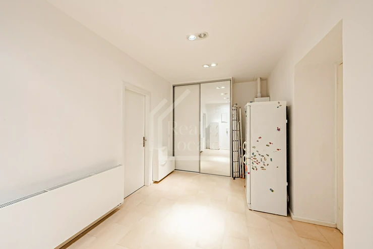 Apartment layout: The hallway features a spacious built-in wardrobe. From the entrance hall, there is access to the living room with a fully equipped kitchenette. The bedroom, accessed directly from the hallway, offers a view of the inner courtyard, ensuring a quiet sleep environment. The bathroom includes a bathtub, toilet, and two sinks. An interesting feature of this apartment is the balcony, which is accessible from the bathroom.