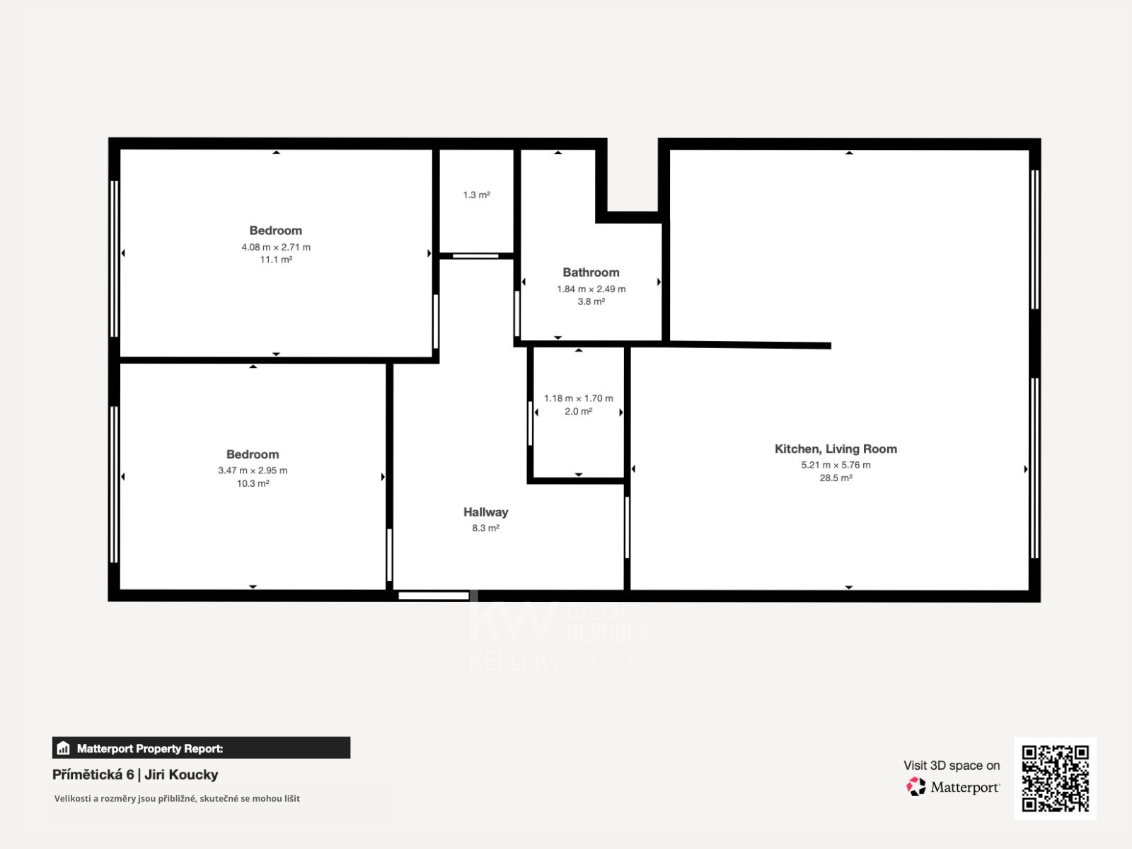 byt nemá balkon, ale díky praktické dispozici skvěle funguje pro pár, rodinu s jedním dítětem nebo jako 2+kk s pracovnou