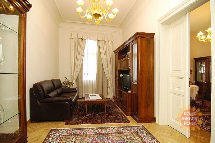 Very nice, renovated apartment 3+kk with situated on the 3rd floor of old house in Truhlarska street - Nove Mesto. Furnished with tasteful furniture. Kitchen unit with fridge, stove and dishes as well as satelite TV, washing machine and bed clothes. Parking place is available to rent in underground garage of near shopping mall Kotva. Great location - directly in historical city centre!Namesti Republiky - subway line B - in walking distance as well as tram stops (no. 5, 8, 14) . Lots of shops, restaurants, cafés and school around.