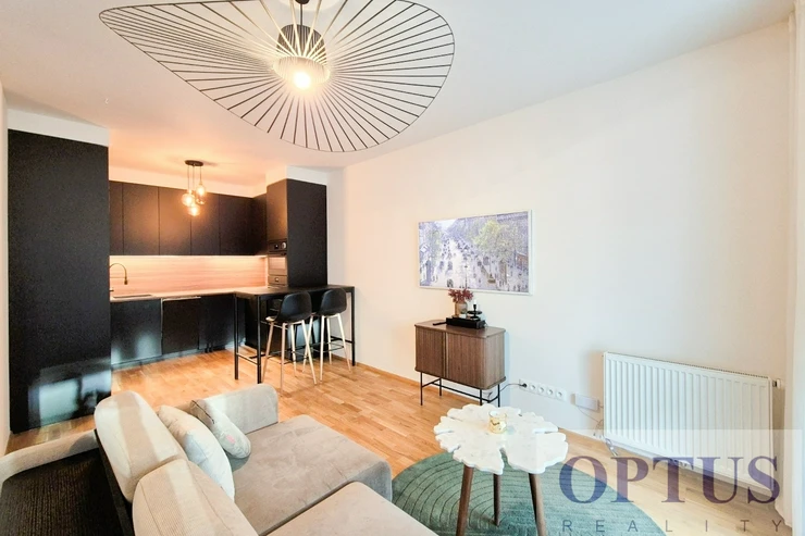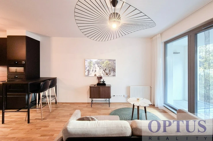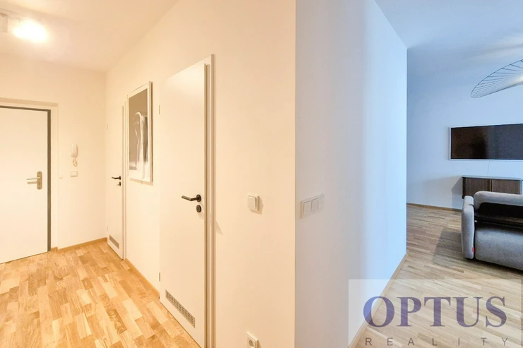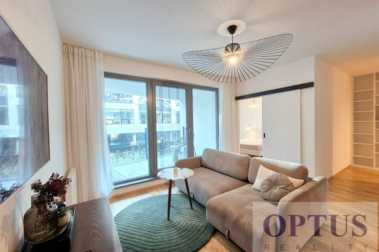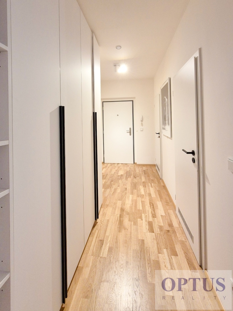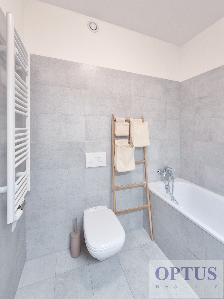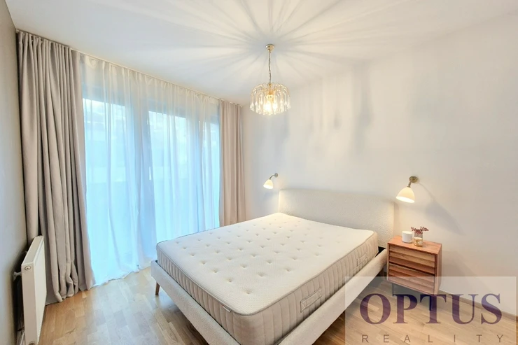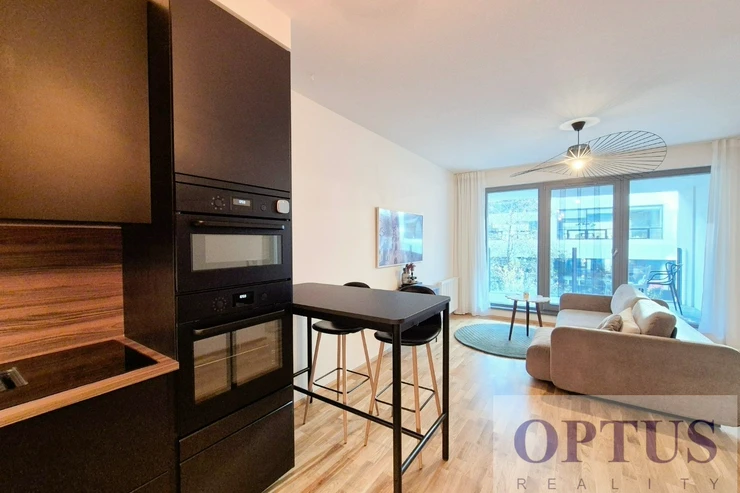Let us offer you for rent a brand new luxury furnished apartment size of 2 + kitchenette (in area of 56.9 m2) + balcony of 5.7 m2 with a south orientation; situated on the 2nd above floor of low-energy building with an elevator in the recently built Port Karolina residential complex with a reception desk, security service using a camera system and a shared terrace on the 7th floor.