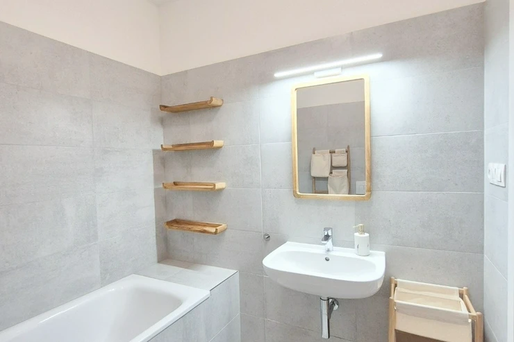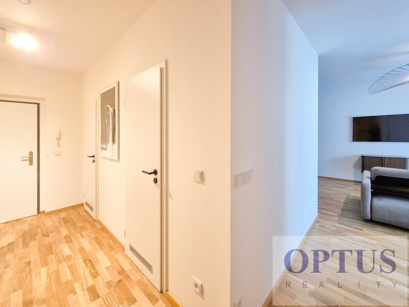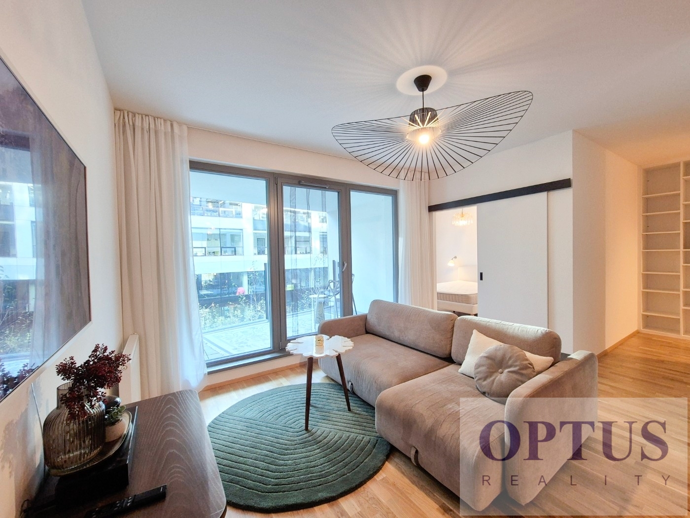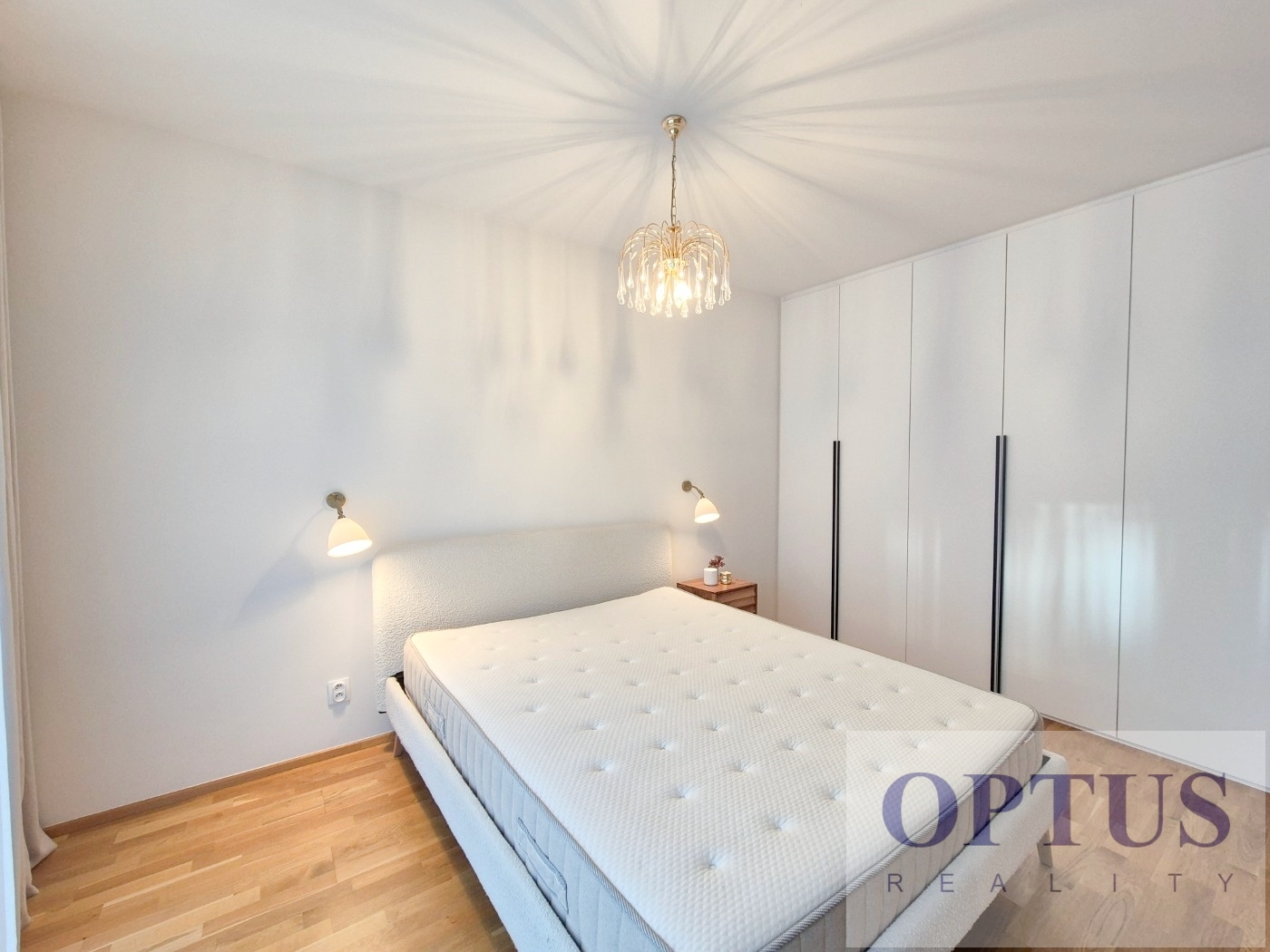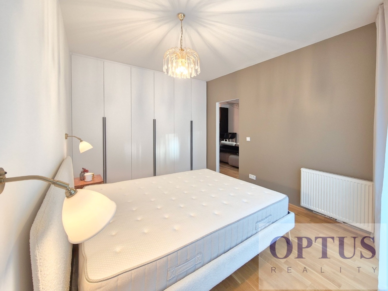 Apartment equipment: The apartment is equipped with luxurious designer furniture and lighting according to the photos, including a Samsung The Frame TV, with built-in wardrobes and a high-quality kitchen with built-in appliances (fridge with freezer, hob with built-in extractor hood, electric oven, microwave with baking function and dishwasher). The apartment also has a washing machine with dryer, preparation for high-speed internet with an optical cable up to 1 Gb/s, wooden floors and central heating.