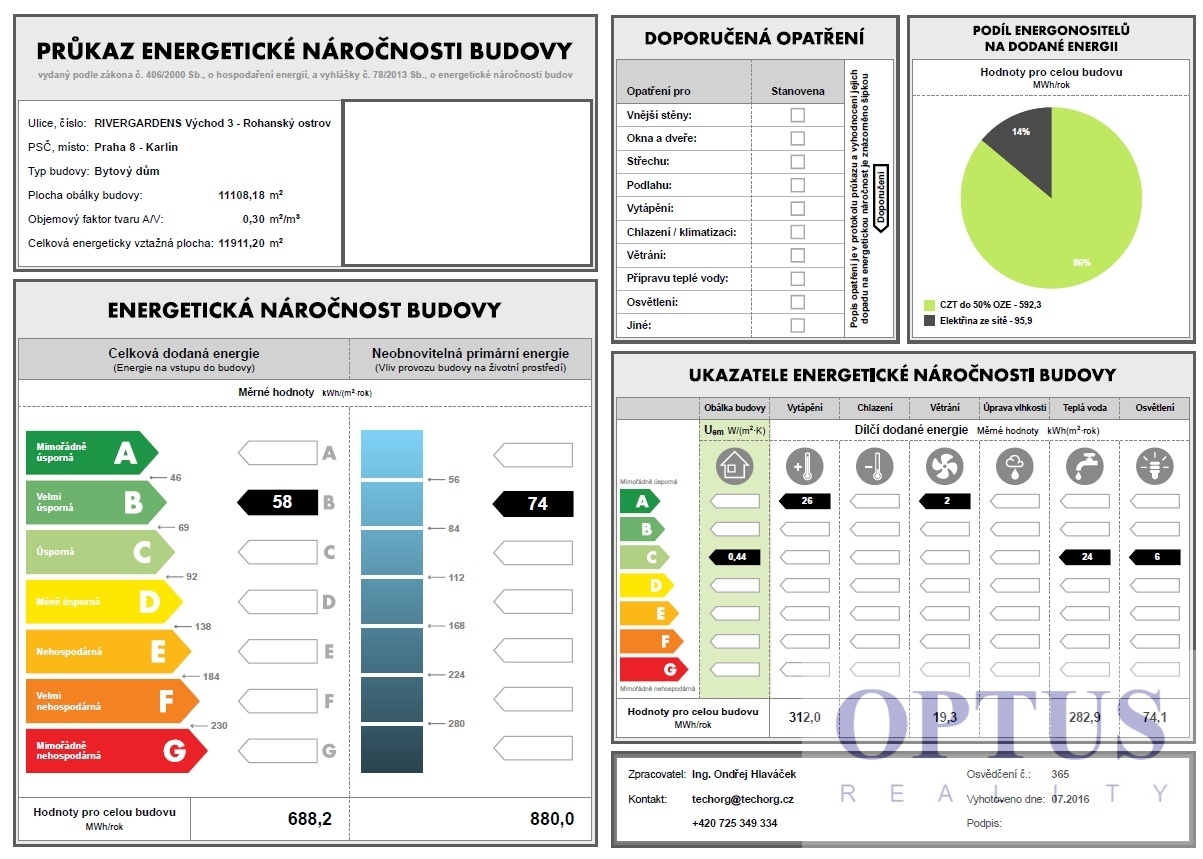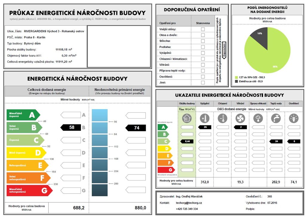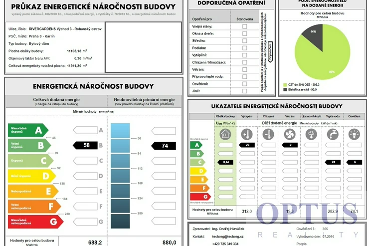 The energy performance level of the building was classified according to Order 78/2013 Coll. as “B”.