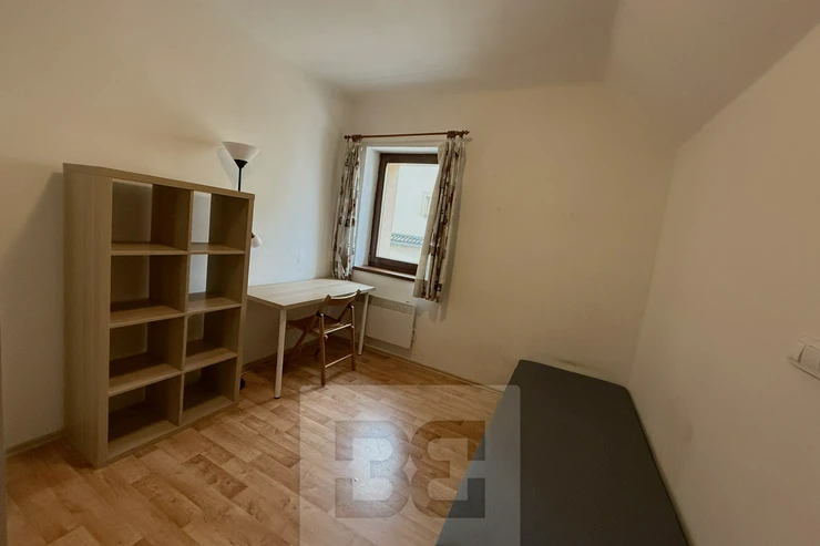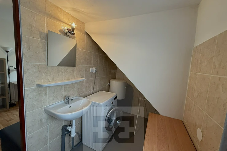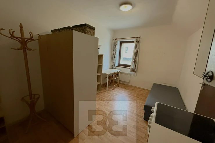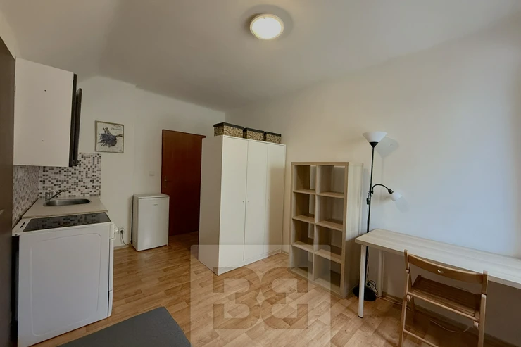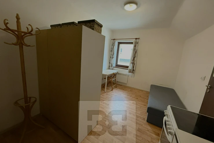The apartment is offered furnished. In the main room you will find a bed, wardrobe, desk, and kitchenette with refrigerator. The window faces a quiet garden. The bathroom is equipped with a shower, sink, toilet, and washing machine, and thanks to the window facing the garden, it provides plenty of daylight.