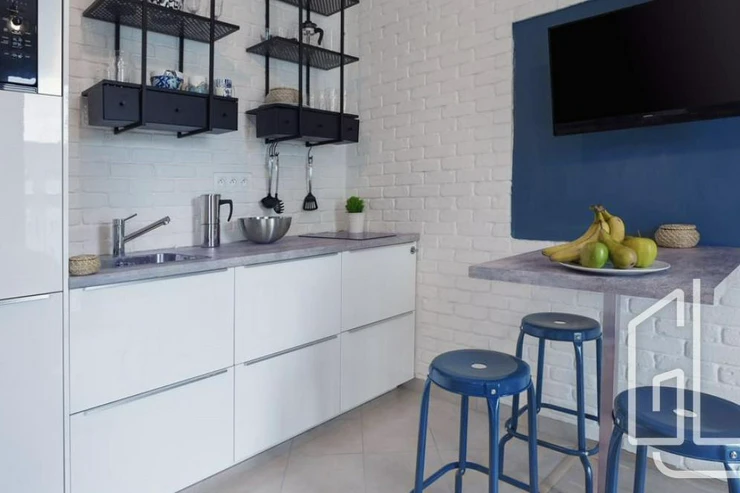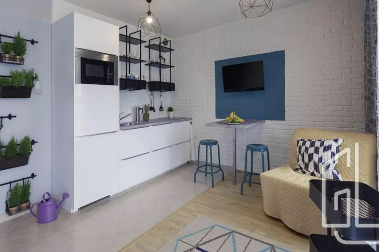 Byt je jednopokojový (studio) s koupelnou a je plně vybavený a zařízený. Kuchyň je kompletně vybavená a byt obsahuje veškerý nábytek a spotřebiče potřebné pro pohodlné bydlení.