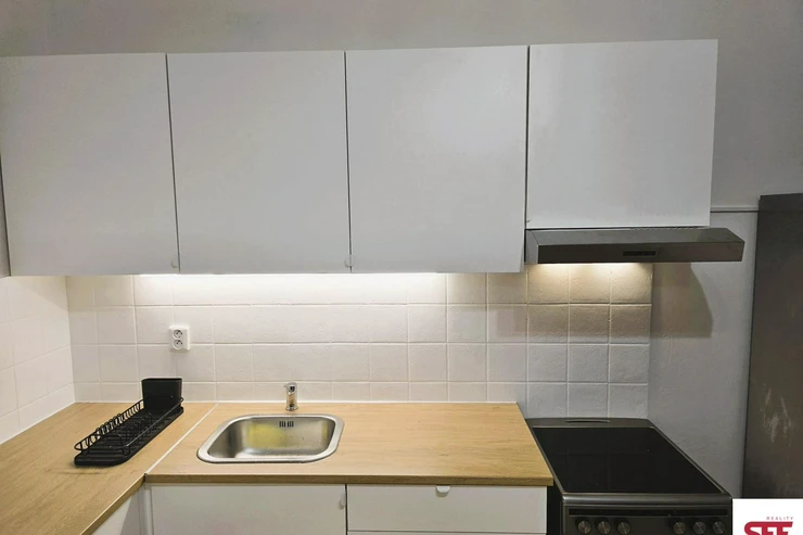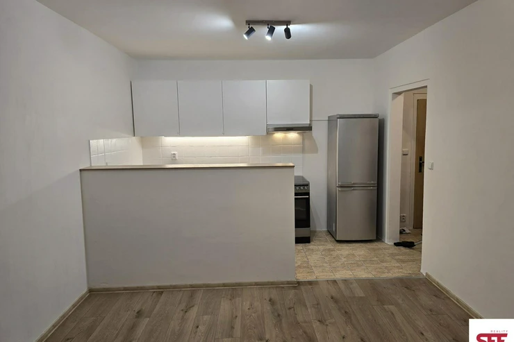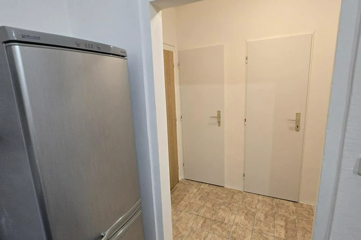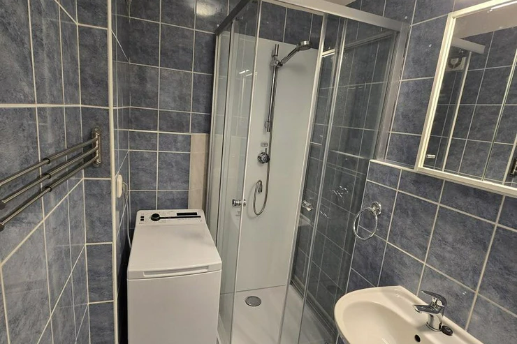 The apartment consists of an entrance hall, a bedroom equipped with a double bed (width 160 cm) with slats without a mattress and a living room with a new kitchenette and new flooring in the living area. The kitchen is equipped with a new electric oven and extractor hood. There is also refrigerator with a freezer. The bathroom has a new shower, sink with a lighted galley and a new washing machine. The toilet is separate. Blinds are installed in the apartment and the entire space is newly painted. The apartment is suitable for an individual or a couple.