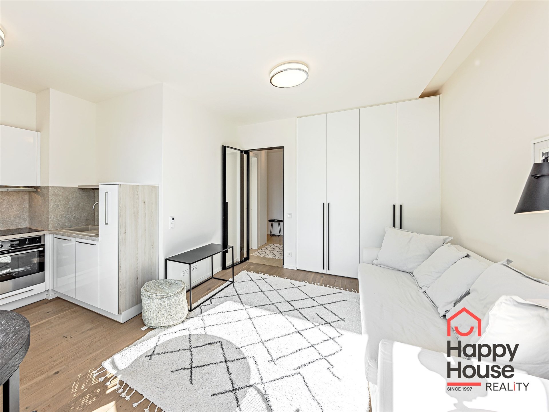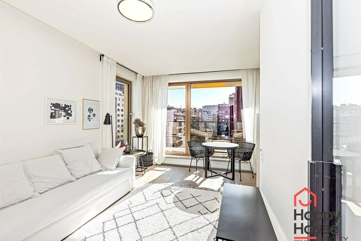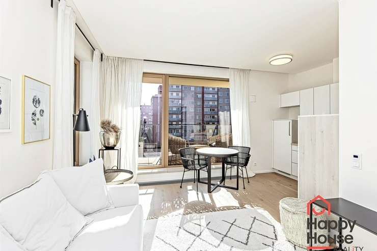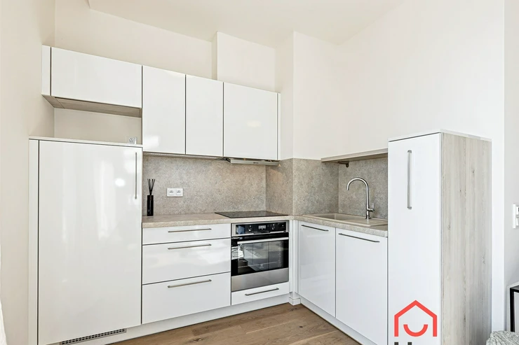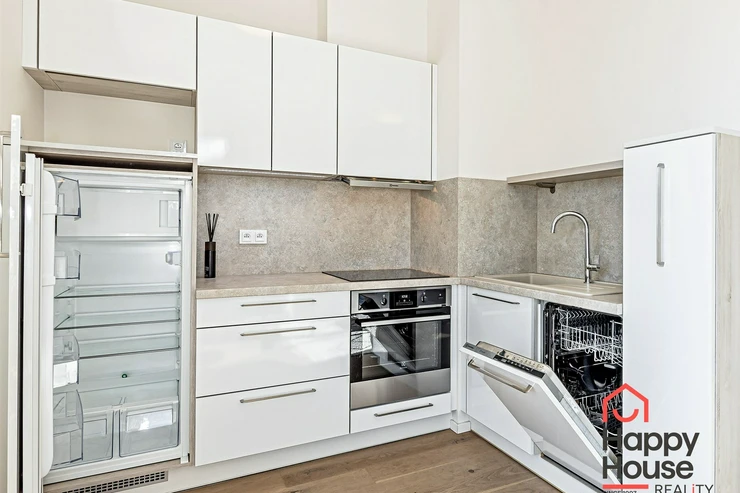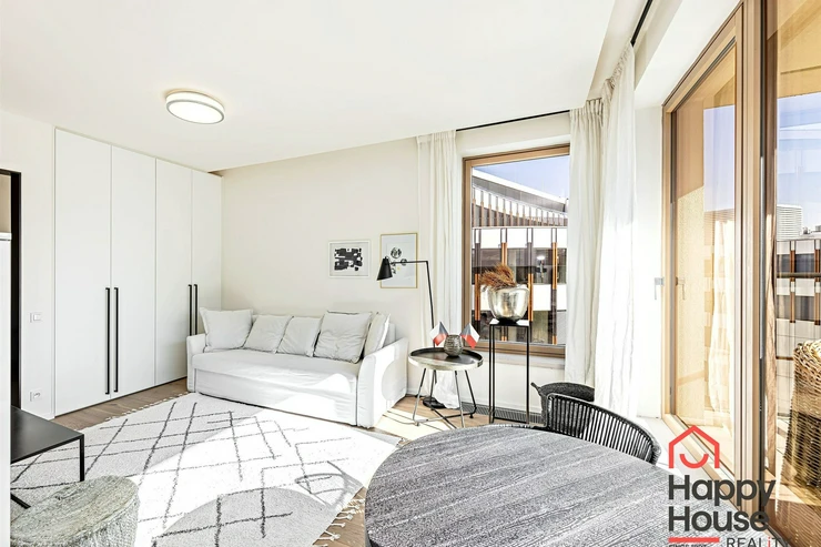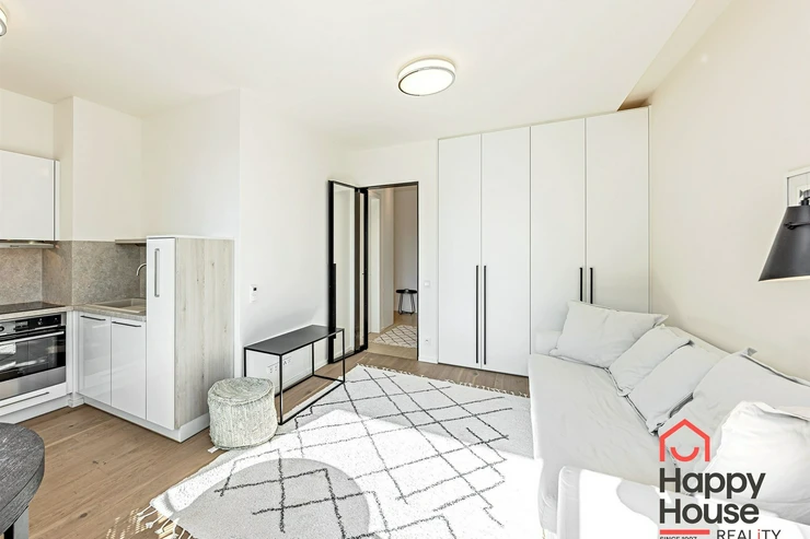 We exclusively offer for rent luxury studio apartment with a balcony on the 6th floor of a new building with an elevator in Prague 4 Nusle. In the entrance hall there is a spacious wardrobe . The apartment is fully furnished and the kitchen is equipped with a modern kitchen unit, a refrigerator with a freezer, a ceramic hob, an electric oven, a hood, and a dishwasher. The bathroom has a shower and toilet. Laminate floating floors, rugs, and tiling. The apartment includes a cellar (2,5 sqm), and there is a daytime reception in the building. Central heating. Parking on the street - zones. View of the courtyard. Photos of the apartment is illustrative from the same apartment one floor higher.