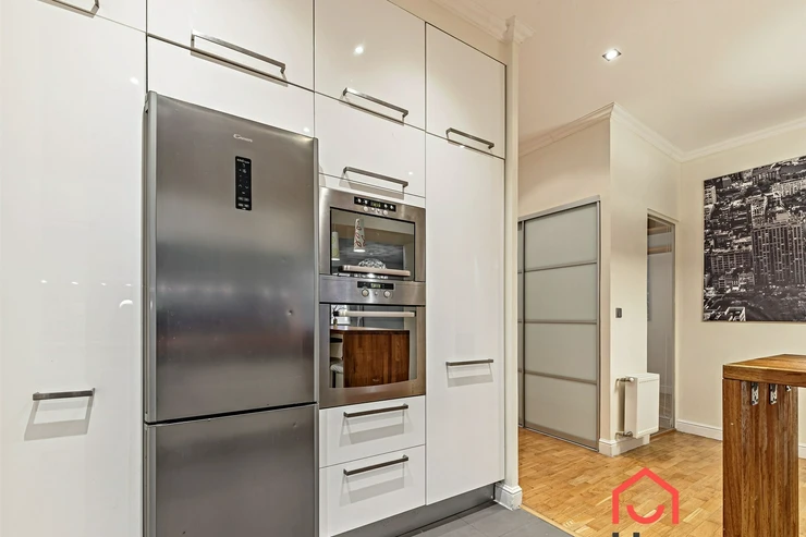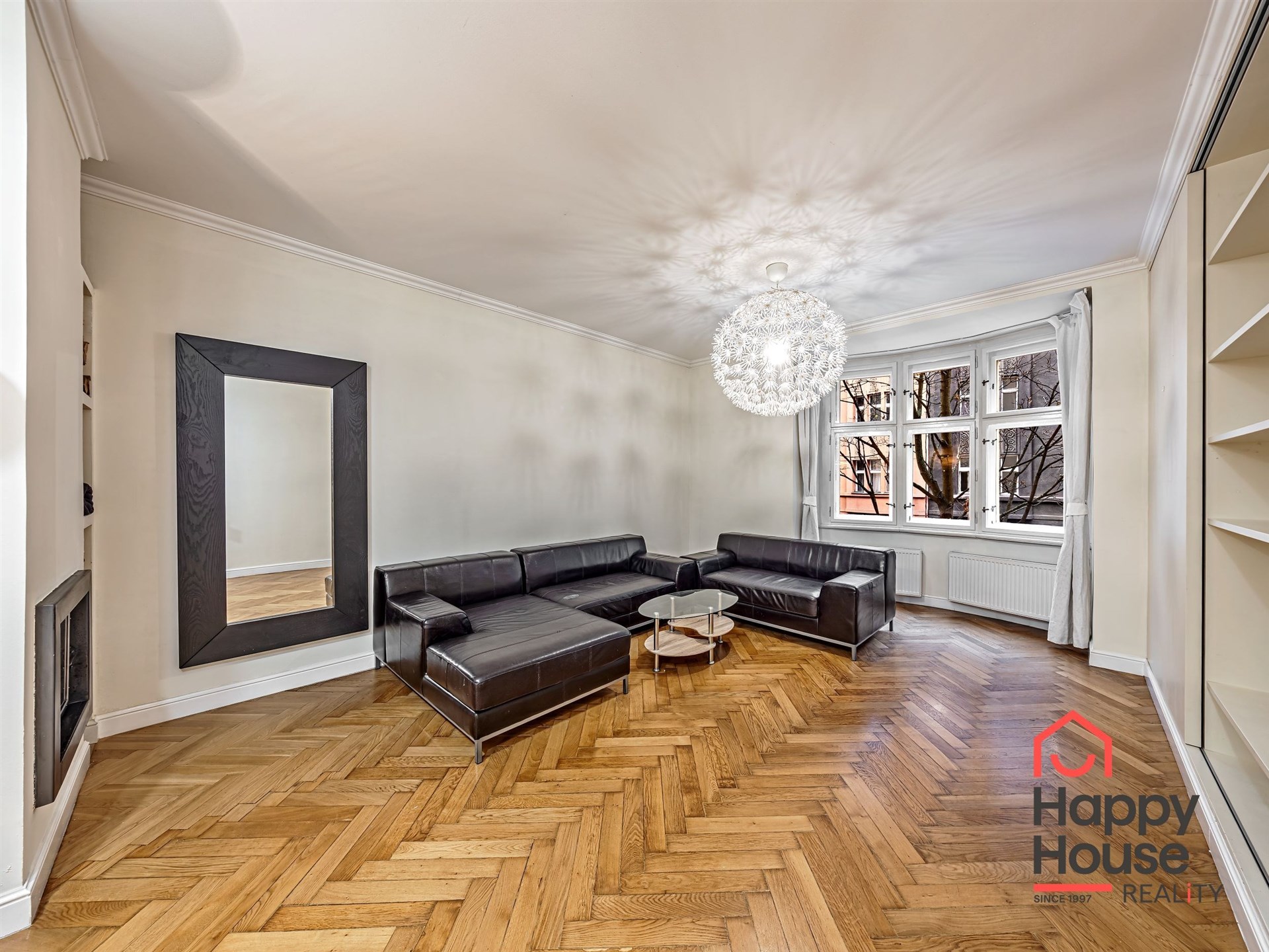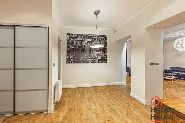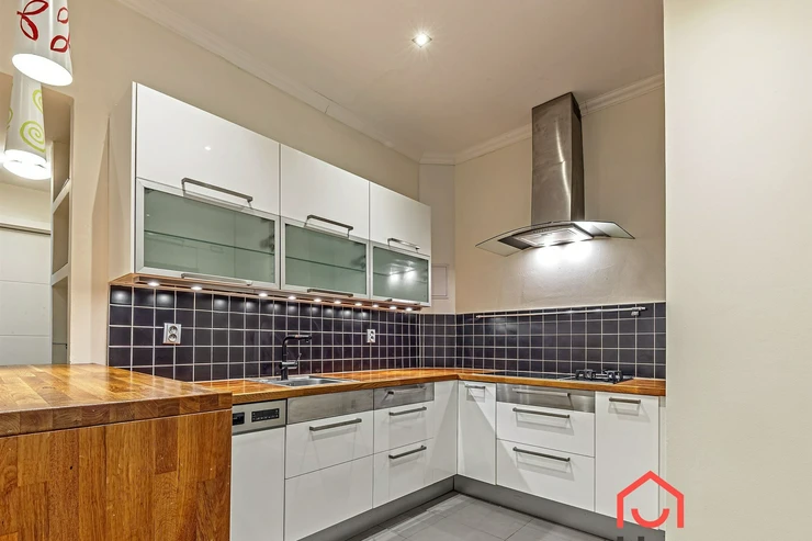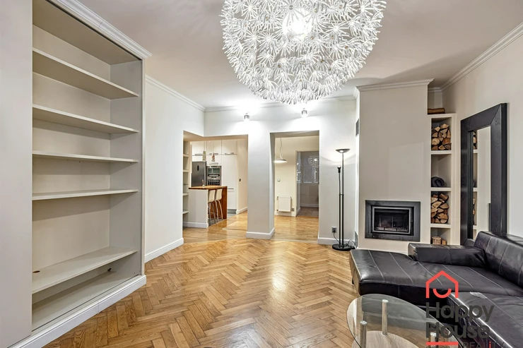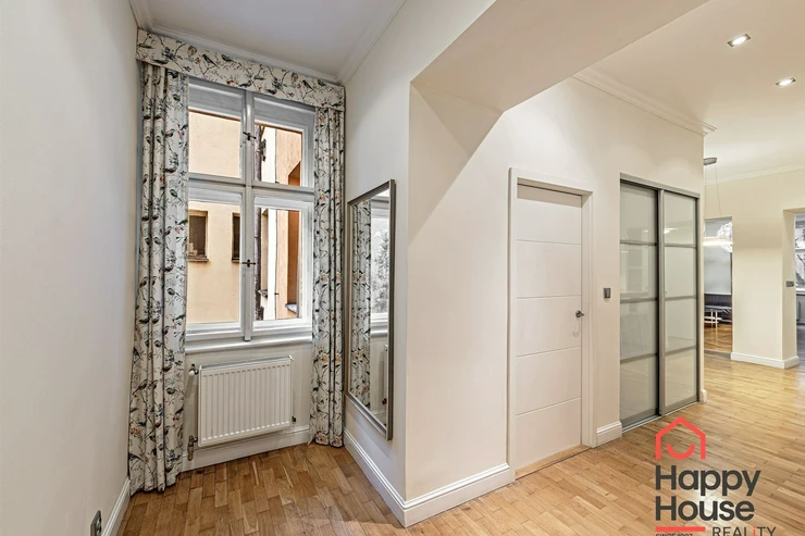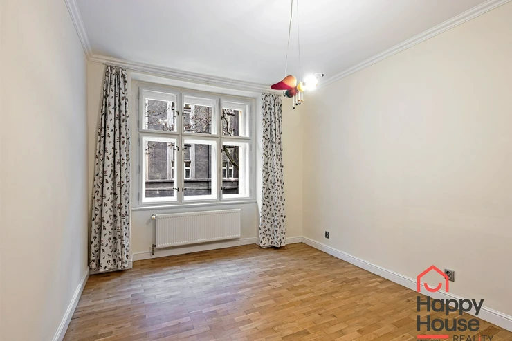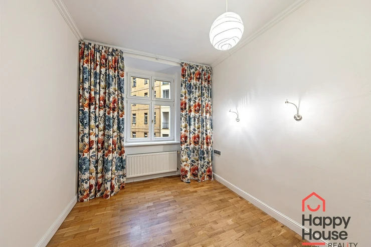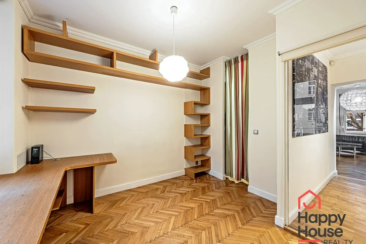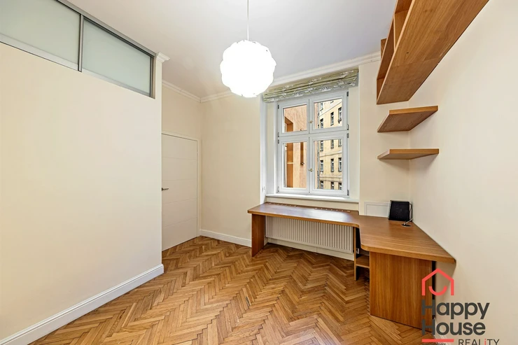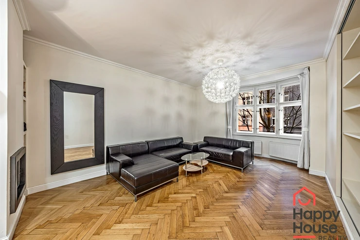 Living near Žižkov Tower. We offer a long-term rental of a partially furnished apartment with four rooms plus kitchenette (floor space 113.5 sqm), which can be provided without furniture or additionally furnished according to the needs of the future tenant. The apartment is located on the 1st floor of a well-maintained tenement house without an elevator in a quiet street of Křížkovského in Prague 3, Žižkov. The apartment underwent a complete reconstruction in 2008. Its advantages include not only high ceilings and large windows, which make it airy, but also a functional wood-burning fireplace that creates a pleasant atmosphere in the apartment. The interior offers a small hallway, a bedroom with its own bathroom (shower and toilet), an office (or child's room) with a storage room, a spacious living room (about 30 sqm) facing north with a dining and kitchen area, a larger children's room with a sleeping loft, and a bathroom (bathtub, toilet, bidet, and washing machine). Bedroom faces south overlooking the courtyard. The kitchen area is equipped with an electric ceramic hob and one gas burner, electric and microwave ovens, dishwasher, fridge with freezer, and extractor hood. Thanks to built-in wardrobes located throughout the apartment, you will find ample storage space. Another advantage is underfloor heating in the kitchen area and bathrooms. The floors are parquet and tiles. Wooden double windows. Own gas boiler. Currently, there is a corner sofa, custom-made desk, sleeping loft, and washing machine available in the apartment. There are only 2 apartments on the floor and a shared loggia (about 3 sqm). The apartment includes a cellar storage space (about 8 sqm) with lockable doors in the basement of the house. O2 and Vodafone services are available in the building. Street parking in the blue zone.