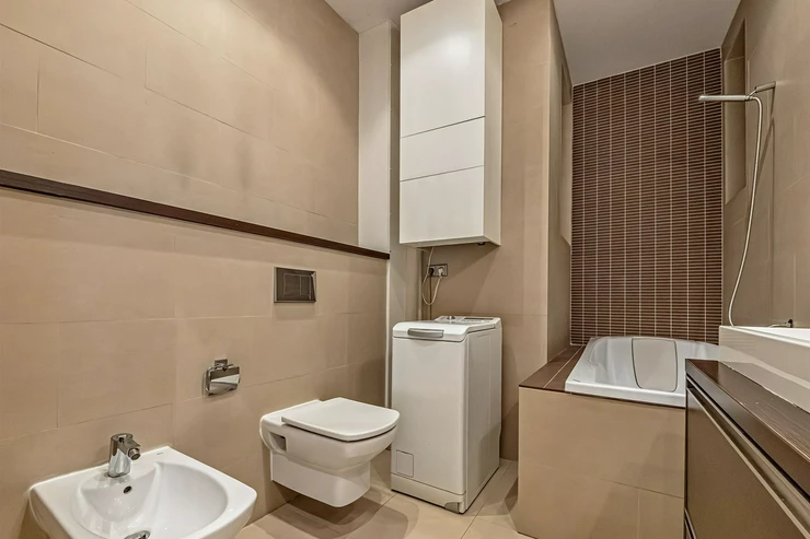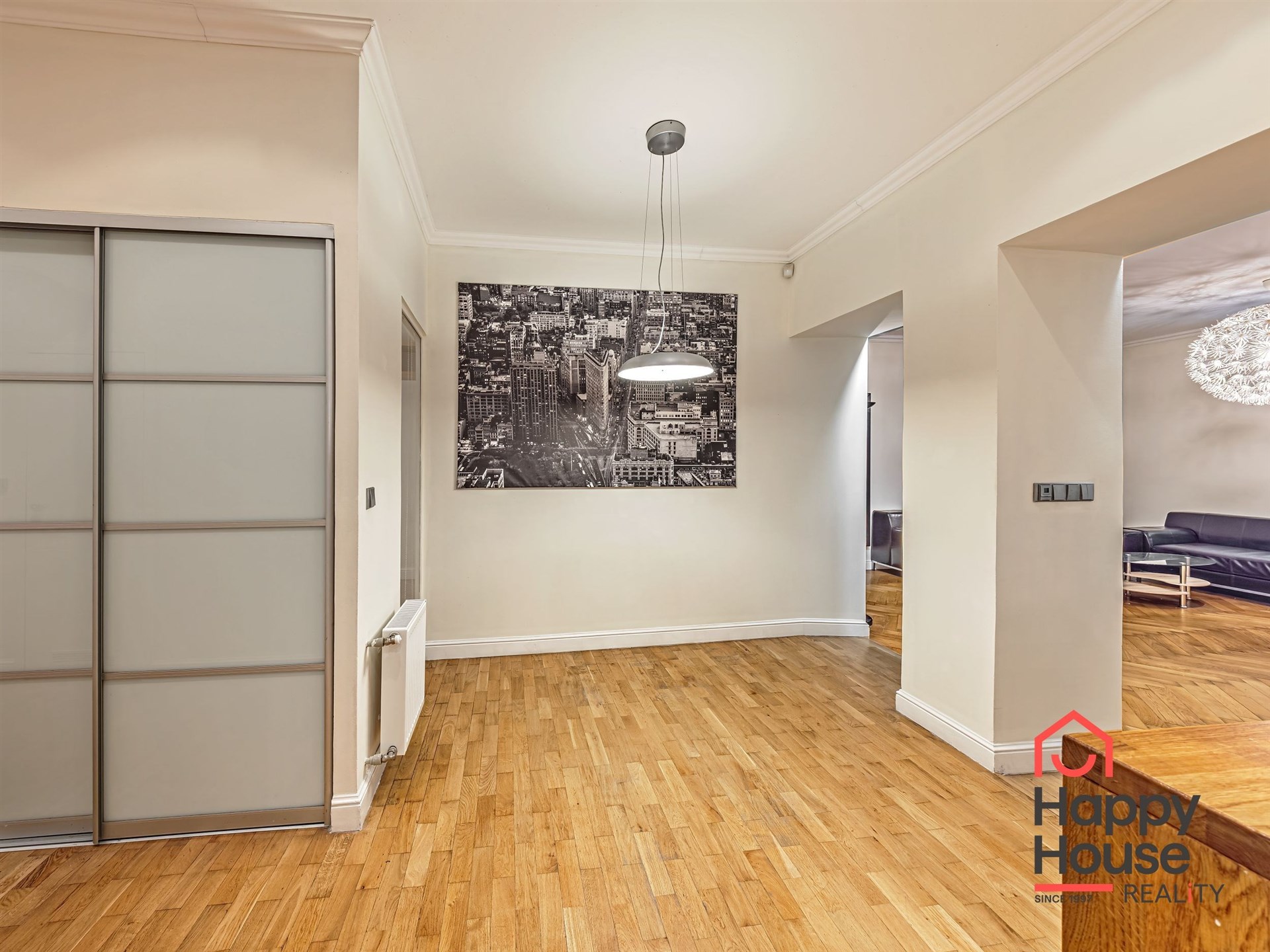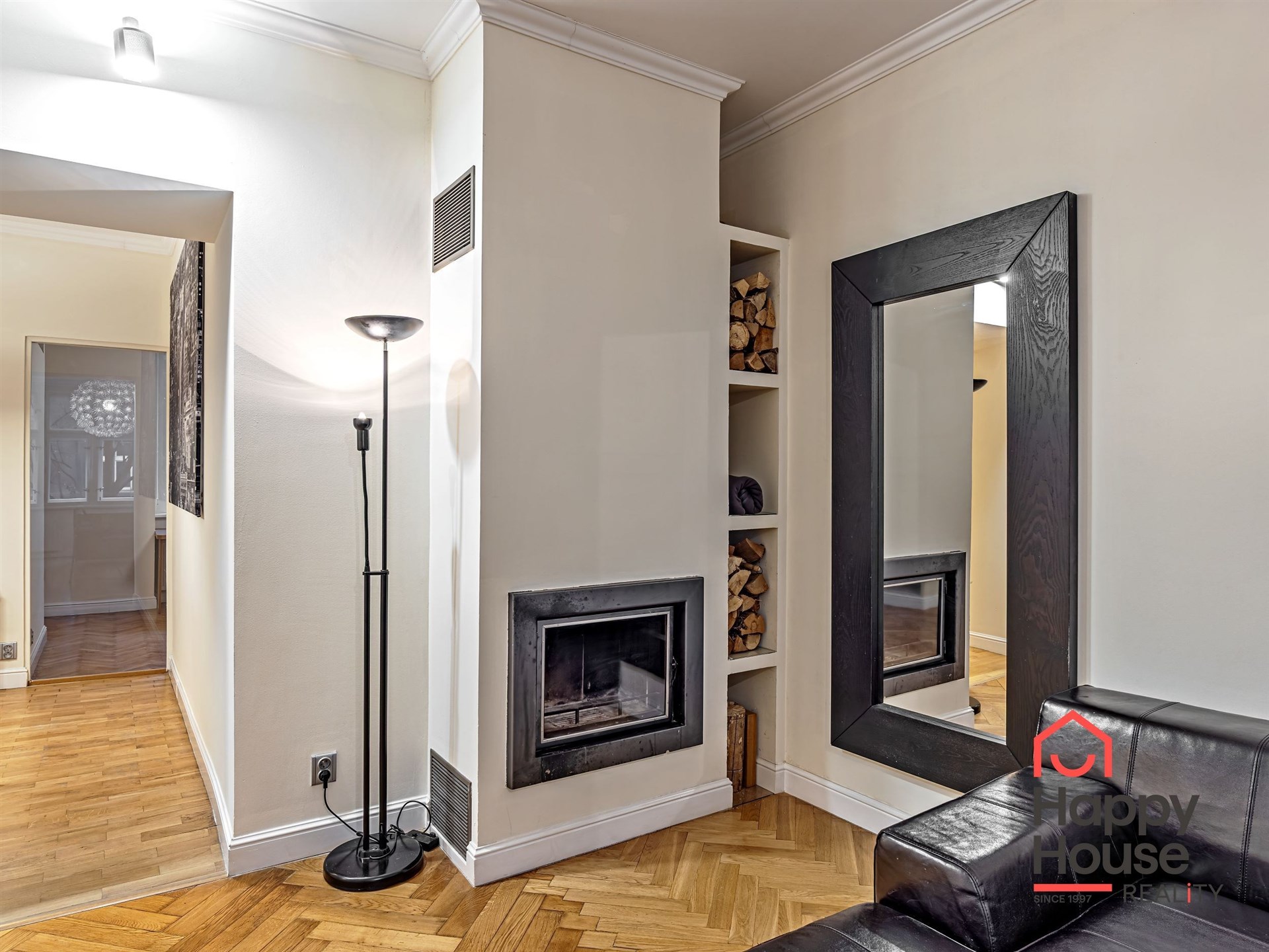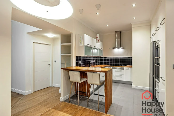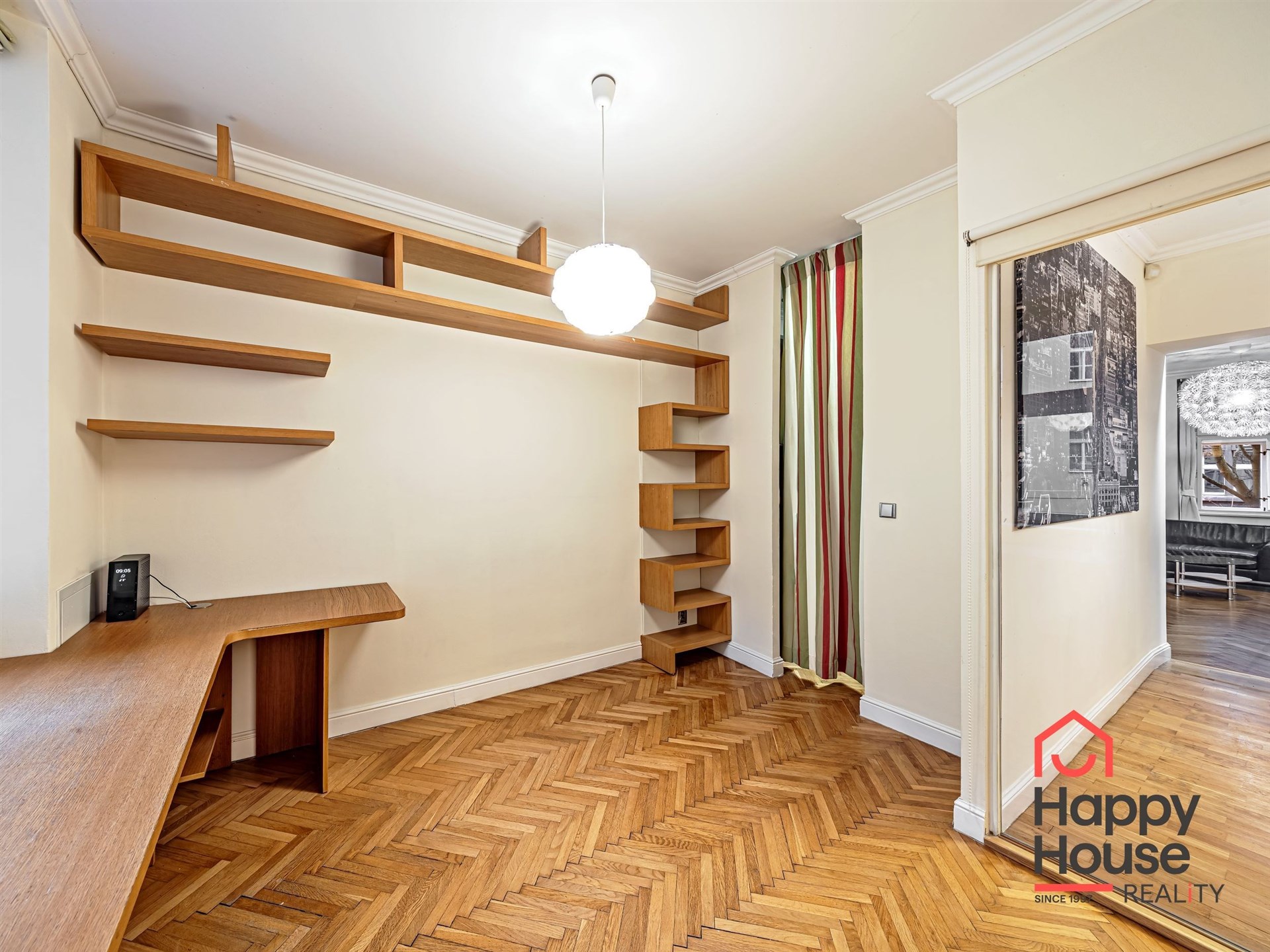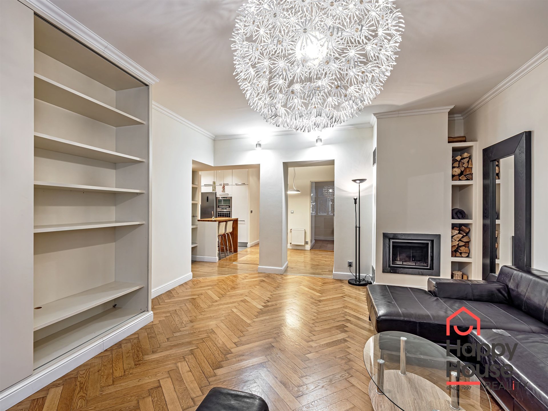 Living near Žižkov Tower. We offer a long-term rental of a partially furnished apartment with four rooms plus kitchenette (floor space 113.5 sqm), which can be provided without furniture or additionally furnished according to the needs of the future tenant. The apartment is located on the 1st floor of a well-maintained tenement house without an elevator in a quiet street of Křížkovského in Prague 3, Žižkov. The apartment underwent a complete reconstruction in 2008. Its advantages include not only high ceilings and large windows, which make it airy, but also a functional wood-burning fireplace that creates a pleasant atmosphere in the apartment. The interior offers a small hallway, a bedroom with its own bathroom (shower and toilet), an office (or child's room) with a storage room, a spacious living room (about 30 sqm) facing north with a dining and kitchen area, a larger children's room with a sleeping loft, and a bathroom (bathtub, toilet, bidet, and washing machine). Bedroom faces south overlooking the courtyard. The kitchen area is equipped with an electric ceramic hob and one gas burner, electric and microwave ovens, dishwasher, fridge with freezer, and extractor hood. Thanks to built-in wardrobes located throughout the apartment, you will find ample storage space. Another advantage is underfloor heating in the kitchen area and bathrooms. The floors are parquet and tiles. Wooden double windows. Own gas boiler. Currently, there is a corner sofa, custom-made desk, sleeping loft, and washing machine available in the apartment. There are only 2 apartments on the floor and a shared loggia (about 3 sqm). The apartment includes a cellar storage space (about 8 sqm) with lockable doors in the basement of the house. O2 and Vodafone services are available in the building. Street parking in the blue zone.