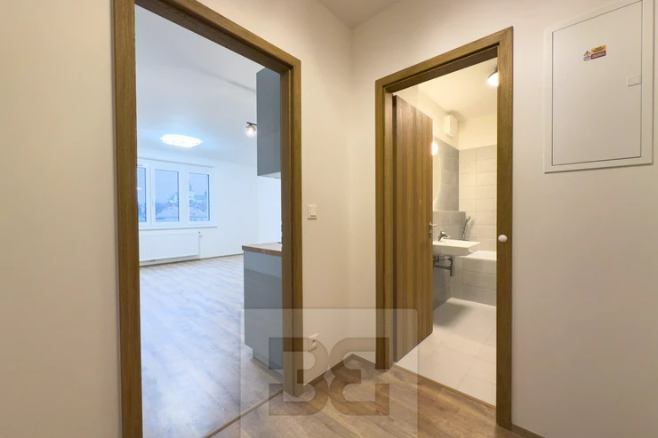 We offer for rent a beautiful modern apartment 1+kk, with an area of 37 sqm, located on the 5th floor of a just completed new building.