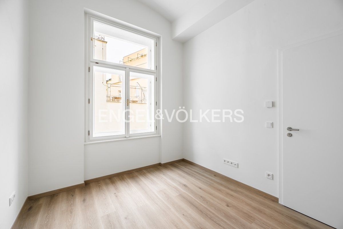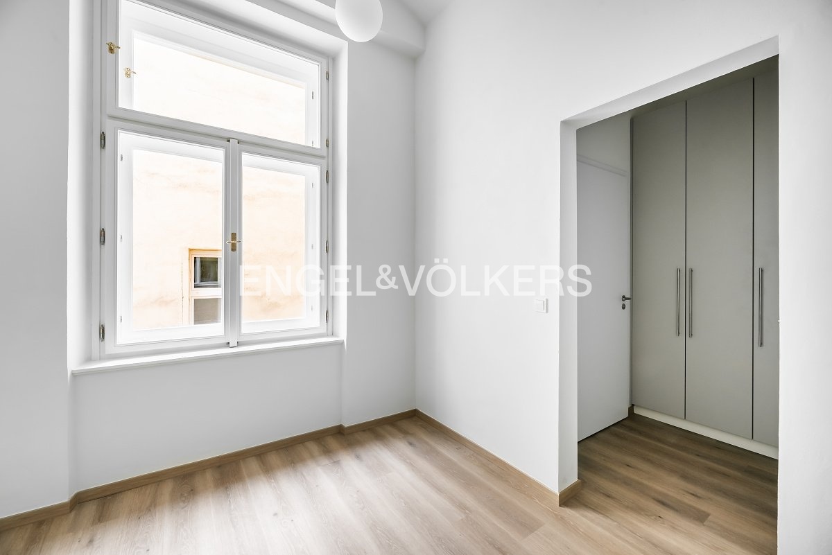 A newly reconstructed apartment with a layout of 2+kt is ready for long-term rent, situated on the 3rd above-ground floor of a building with an elevator, in a quiet courtyard directly on Wenceslas Square.