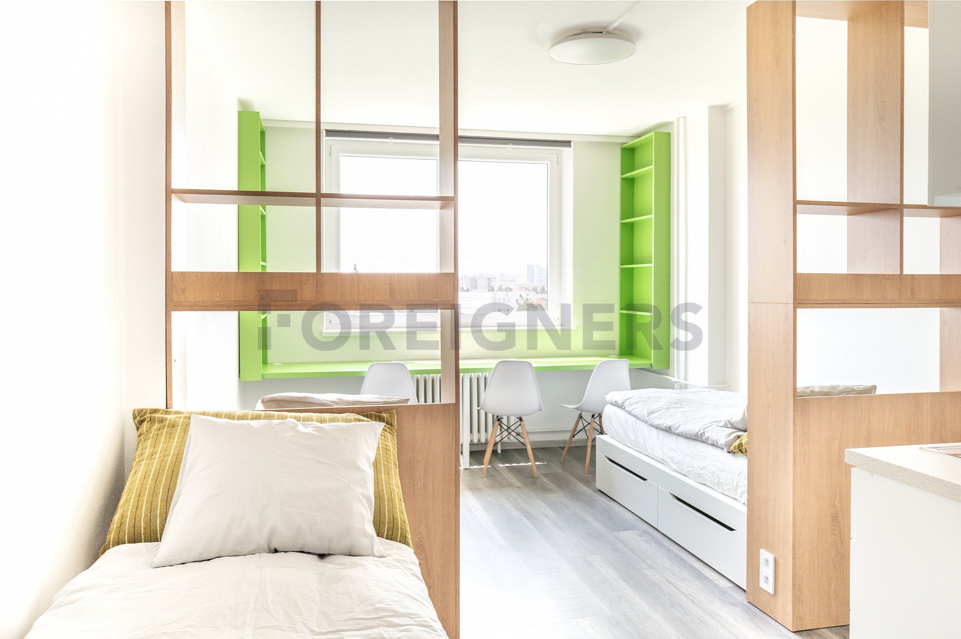 Modern accommodation available in Střížkov – approximately 15 minutes to the city center, metro line C, with a supermarket just 2 minutes away. Perfect for students and young professionals.