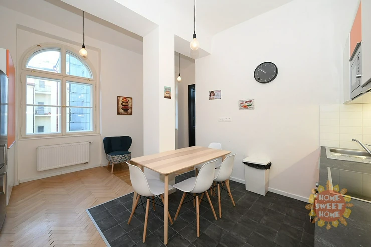 The residence is located in a very popular location right in the city center and in close proximity to the Kinsky Garden and Petrin Park. Excellent civic amenities: shopping center Andel, Cinema City Nový Smíchov, schools, restaurants, bars and much more nearby. Excellent transport connections: in front of the house there is a tram stop ,, Švandova divadlo“, 10min walk to the metro station Anděl or five tram stops to the train station ,,Prague - Smichov”.