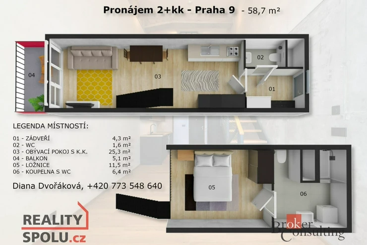 We offer for rent a brand-new, never-before-occupied 2+kk apartment with a balcony, with a total area of 58.7 m², located in the modern residential project Lofty Kolbenova in the popular location of Prague 9 – Vysočany.