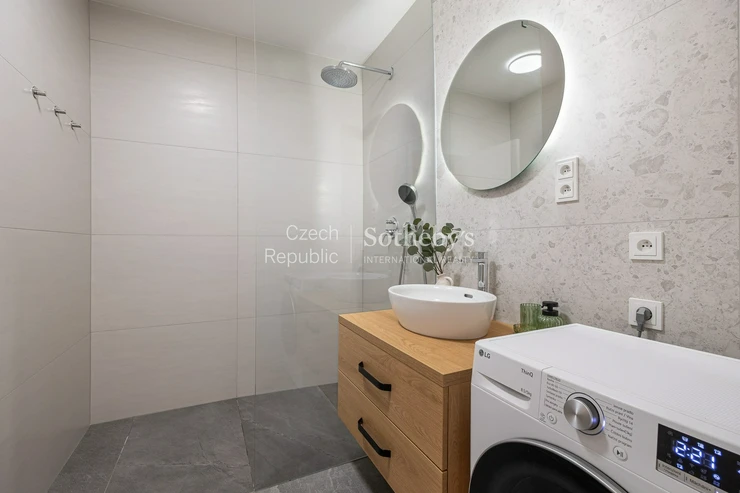 Technologie zahrnují podlahové vytápění a chlazení, rekuperaci vzduchu a inteligentní systém LOXONE, který umožňuje ovládání vytápění, chlazení, stínění a světel. Díky tomu je v bytě příjemné klima během celého roku. Byt je vybaveny vestavěnými spotřebiči Samsung v kuchyni, pračkou a sušičkou stejné značky v koupelně a multimediální televizí v obývacím pokoji.