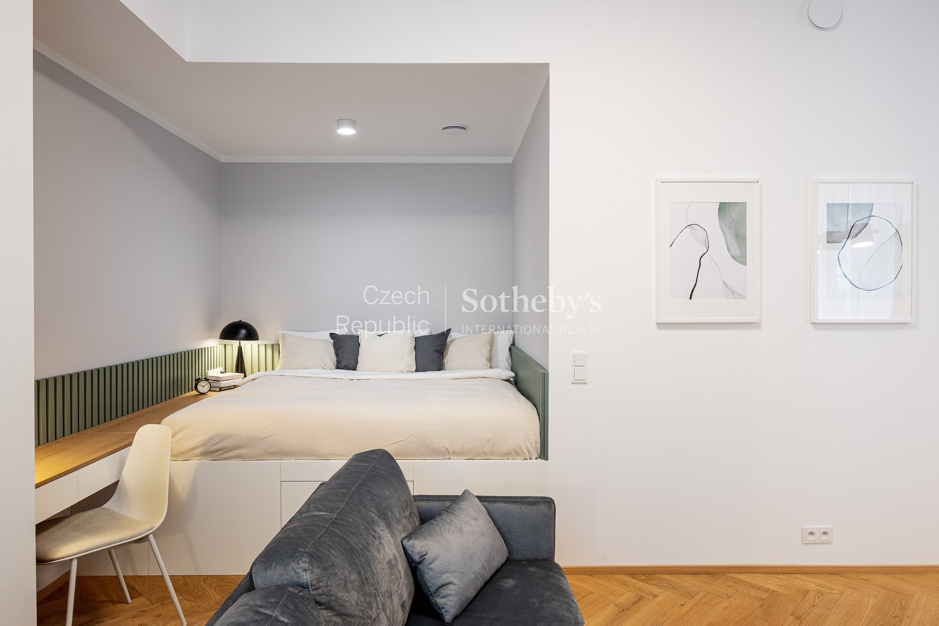 Sotheby’s International Realty Czech Republic nabízí k pronájmu moderní byt 1+kk o celkové ploše 42 m², situovaný ve 3. nadzemním podlaží nově zrekonstruované Rezidence Sovova v oblíbeném Karlíně.