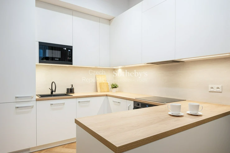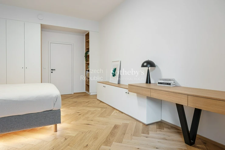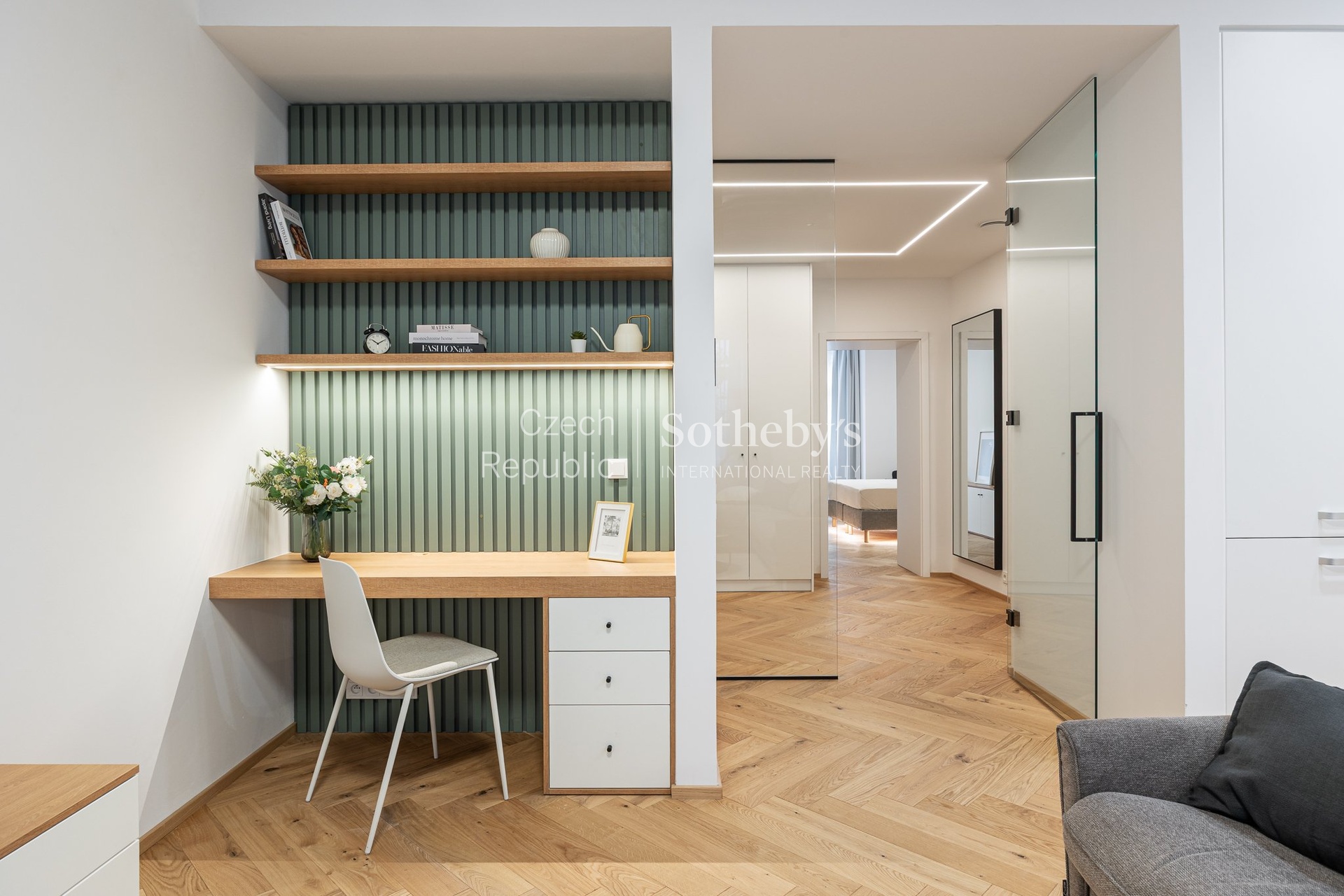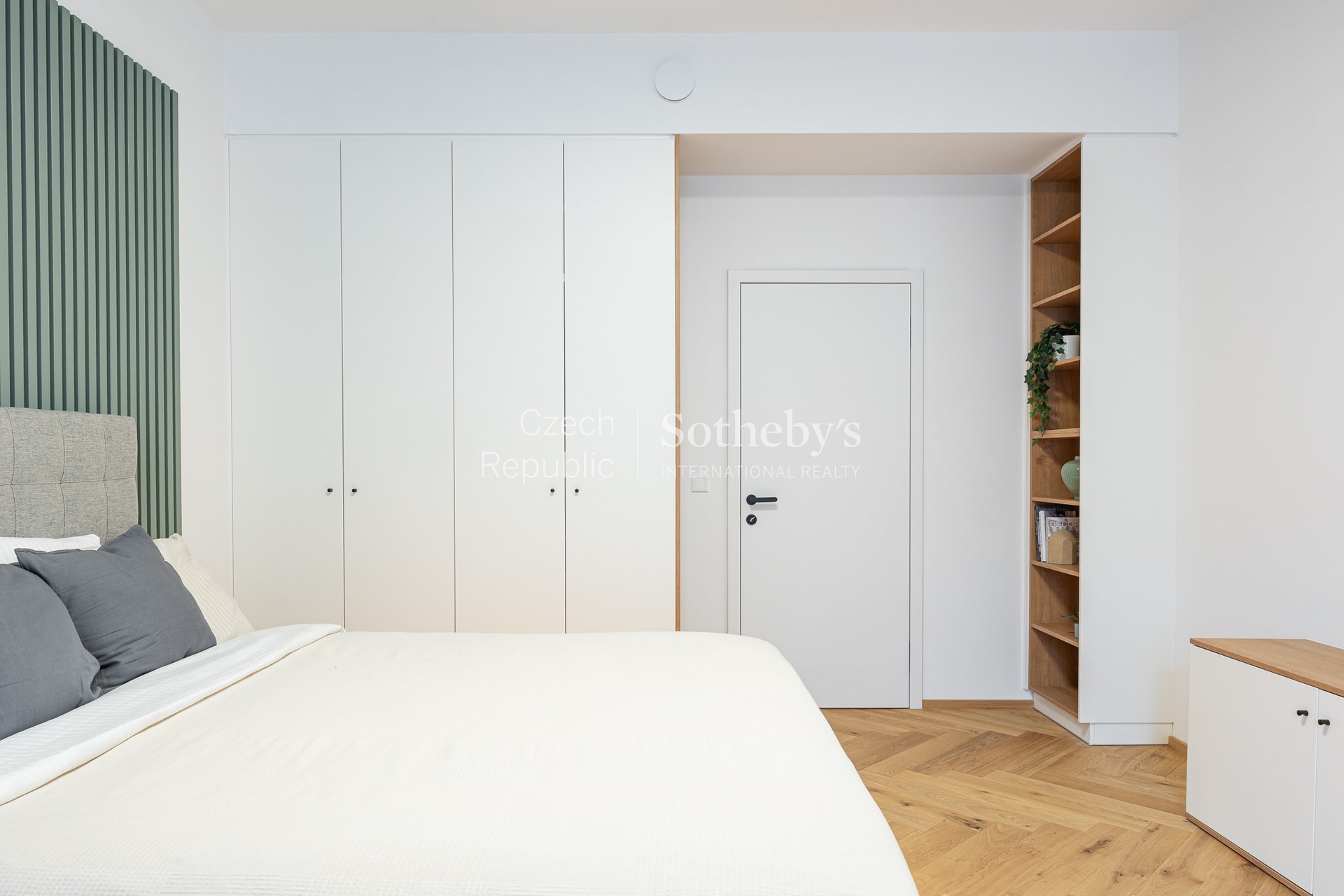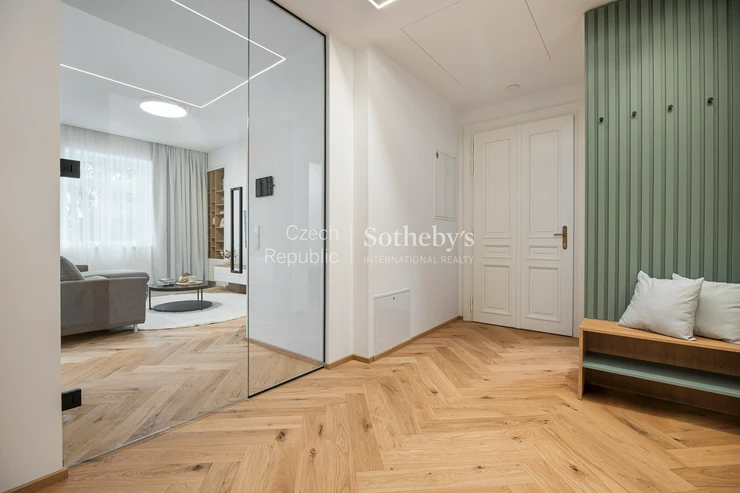 Sotheby’s International Realty Czech Republic presents a modern 1-bedroom apartment for rent with a total floor area of 73,50 sqm, located on the third floor of the newly renovated Sovova Residence in the sought-after district of Karlín.