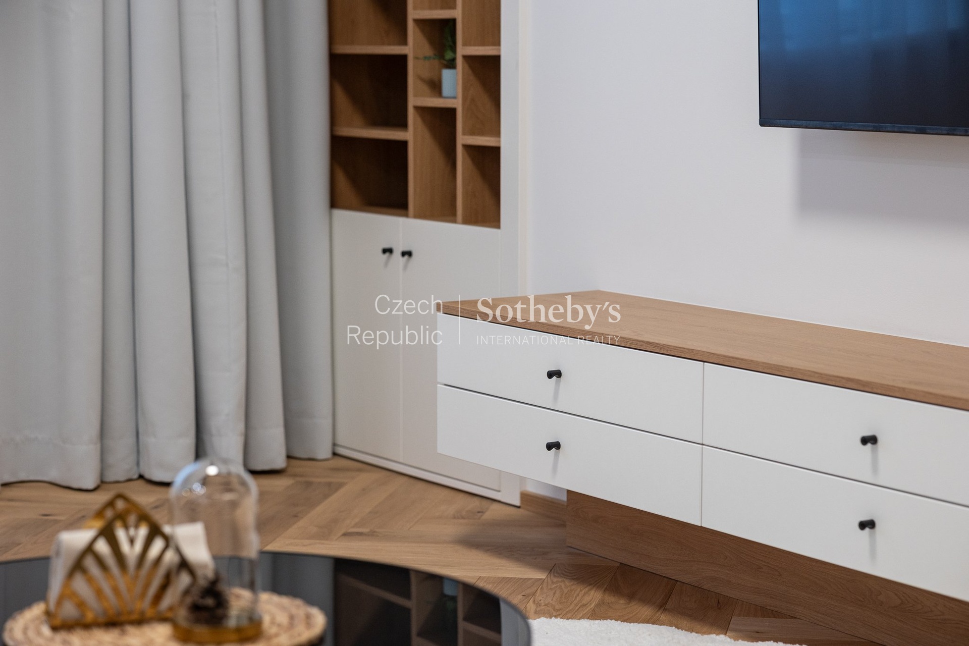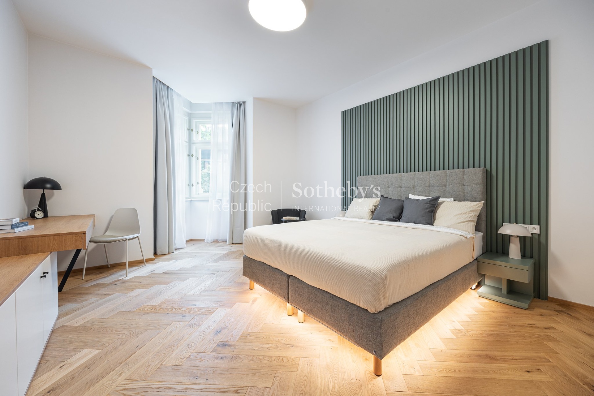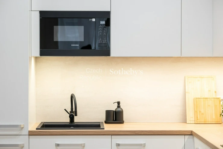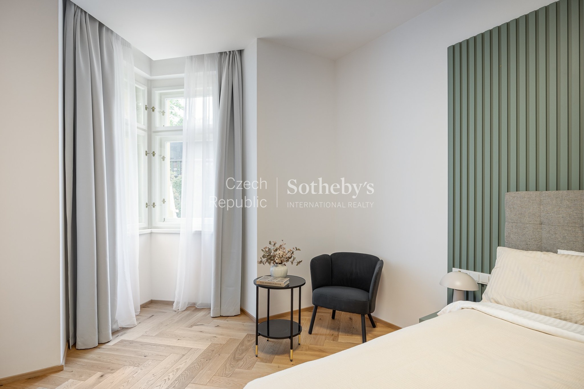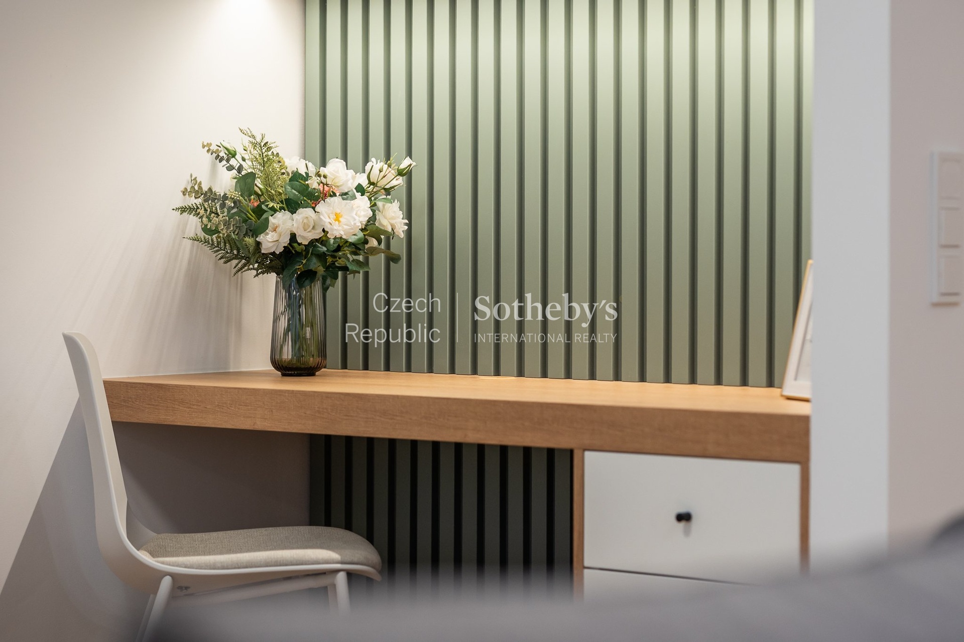 Sotheby’s International Realty Czech Republic presents a modern 1-bedroom apartment for rent with a total floor area of 73,50 sqm, located on the third floor of the newly renovated Sovova Residence in the sought-after district of Karlín.