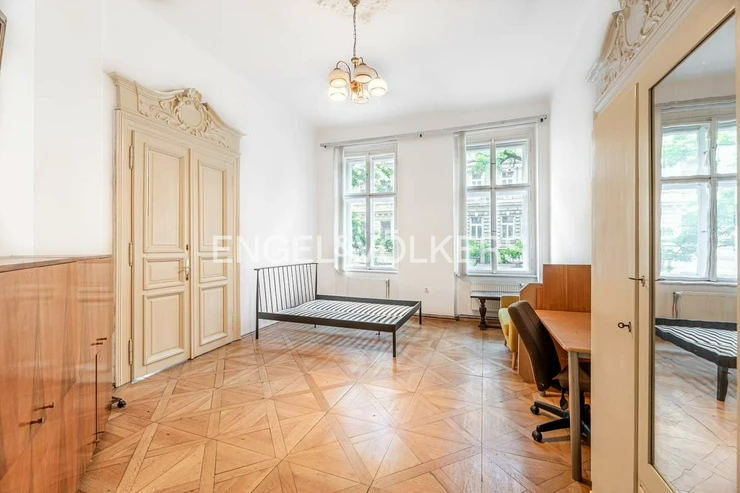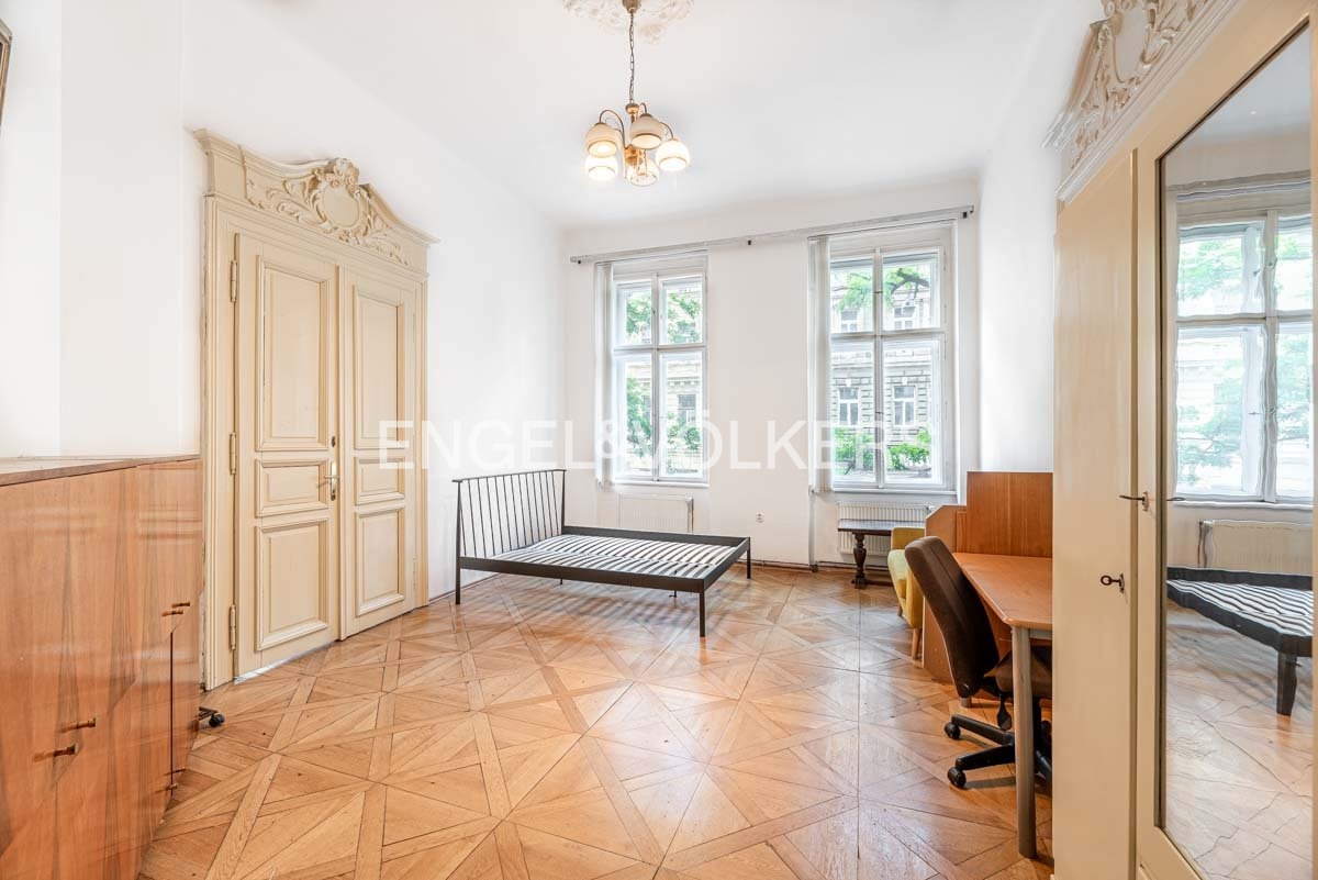 The apartment has beautiful, renovated, original parquet floors. The apartment is heated by a gas boiler. The building has an elevator to the mezzanine. The building is guarded by a camera system, and the entrance is on chip.