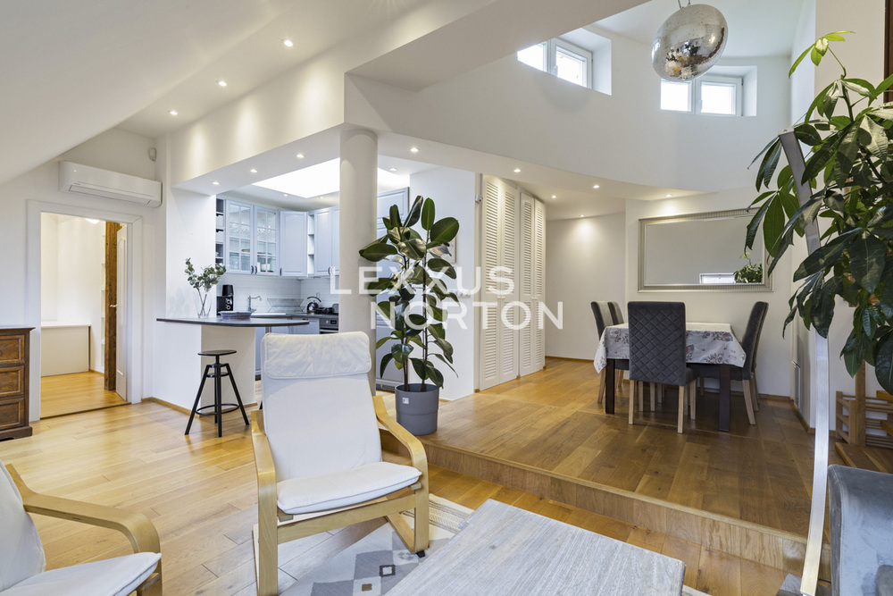 We offer for rent furnished 3 bedroom apartment of 110 sqm with two balconies and a roof terrace, situated on the 5th floor of a building with elevator. The property is located in a beautiful area of Prague 3 - Zizkov with all amenities and good transport infrastructure.We offer for rent a cozy attic apartment that offers comfortable and modern living. The layout includes an entrance hall, a spacious living room with a kitchenette and direct access to a large roof terrace (90 sqm). The master bedroom has a walk-in closet, balcony (4 sqm), and en suite bathroom, while the second bedroom has a balcony (4 sqm) facing the courtyard. The apartment also includes a third bedroom and a second bathroom. There is a separate garage in the courtyard of the house for a fee of CZK 4,500/month.The entrance hall has built-in wardrobes. The kitchenette is fully equipped with an induction hob, oven, refrigerator, freezer, and dishwasher. The apartment has an en-suite bathroom with a shower and toilet, and a second bathroom with a bathtub, shower, and toilet. The apartment is equipped with a washing machine, and air conditioning. The terrace offers a covered glassed-in area with retractable blinds, heating, and a designated barbecue area.The area is made up of apartment buildings and has excellent transport accessibility. The area has bus stops, trams and metro stations Flora and Jiriho z Podebrad. By car you can reach the city ring road in 6 minutes, the Vaclav Havel Airport in 32 minutes and the Atrium Flora shopping centre in 3 minutes. In the area you will find all civic amenities - kindergartens, primary and secondary schools, gymnasium, international school New School, pharmacies, hospital, restaurants, supermarkets, playgrounds and post office. For leisure activities in the area you can use the swimming pool, football stadium, sports centre, tennis and volleyball courts, outdoor gyms, bowling, skittle alley or cycle paths. You can go for a walk to Mahler's Orchards with a lookout tower, Krejcarek and Vrch Vitkov parks or go cycling to Riegrovy Sady.The amount of billable monthly deposits is 1,250 CZK per person + electricity, gas, and internet are transferred to the tenant.The inquiring client agrees to pay a commission of 1 month's rent plus VAT.If you are unable to view the property in person, we also offer you a video tour from the comfort of your home in real time via Messenger, WhatsApp and other communication platforms.