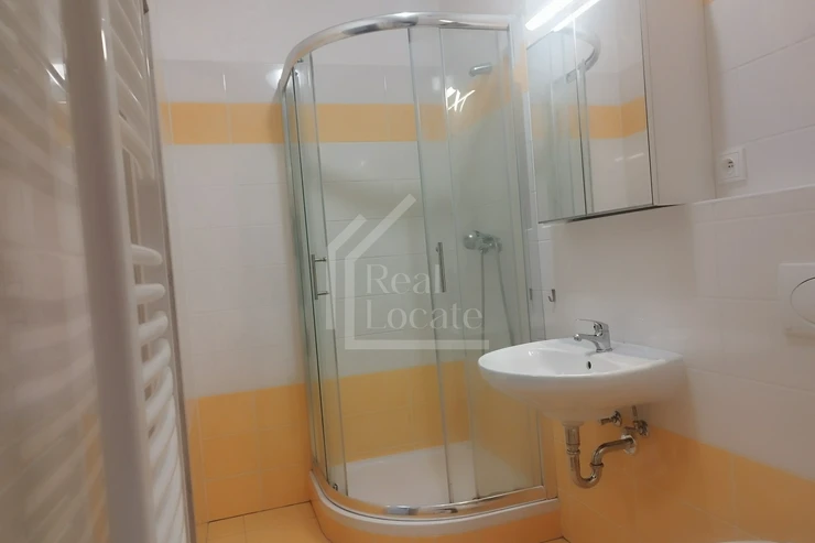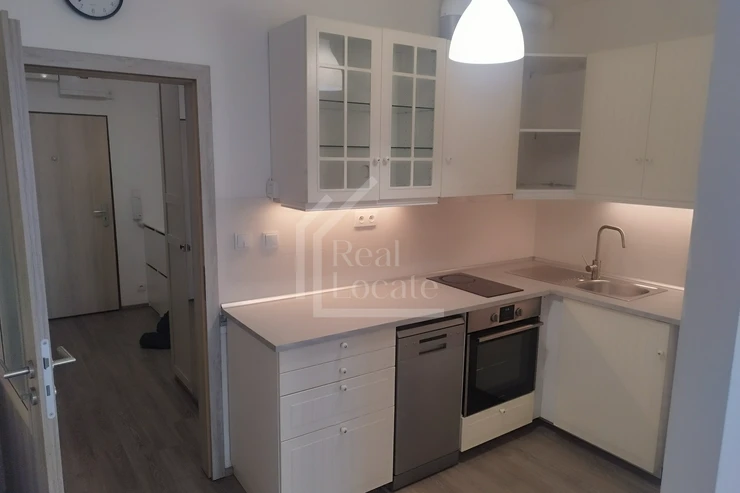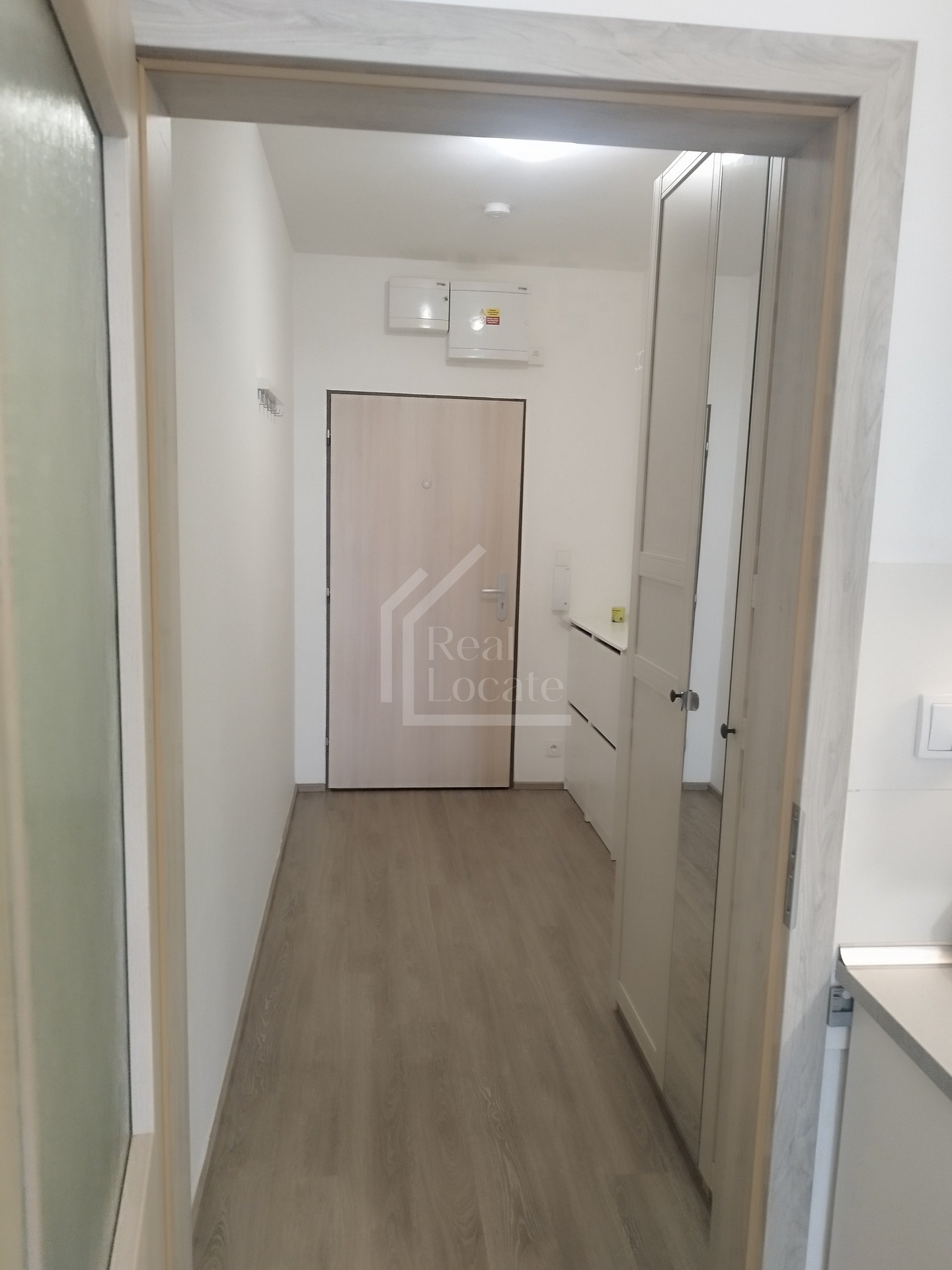 A modern, partially furnished studio apartment + balcony (35m²) located on the 2nd floor of a new building with an elevator on Soukalova Street, Prague 4 - Modřany. The apartment consists of a living room with a balcony facing a quiet courtyard, a partially separated kitchenette with a refrigerator and dishwasher. The apartment also has a bathroom with a shower, toilet, and washing machine with enough space for a dryer. There is a wardrobe and shoe rack in the hallway. Very popular location near Modřanská rokle. All amenities in the vicinity. Suitable for a maximum of 2 people.