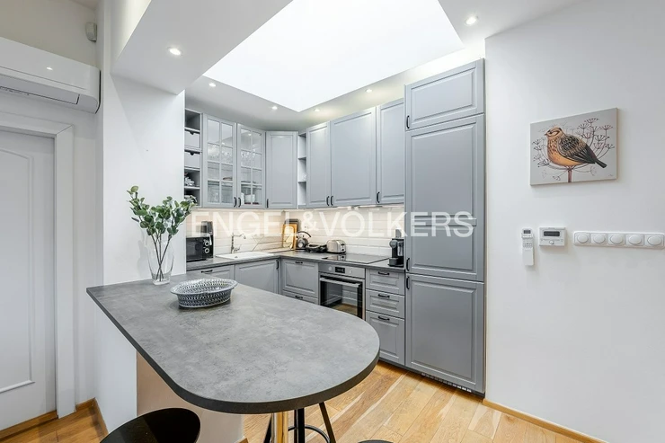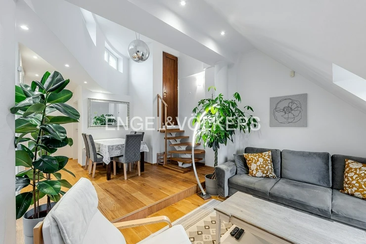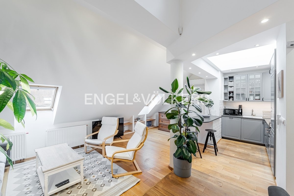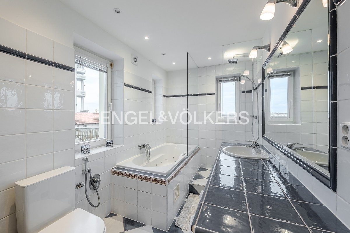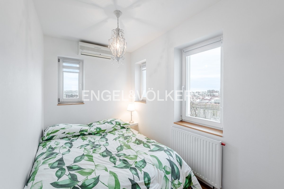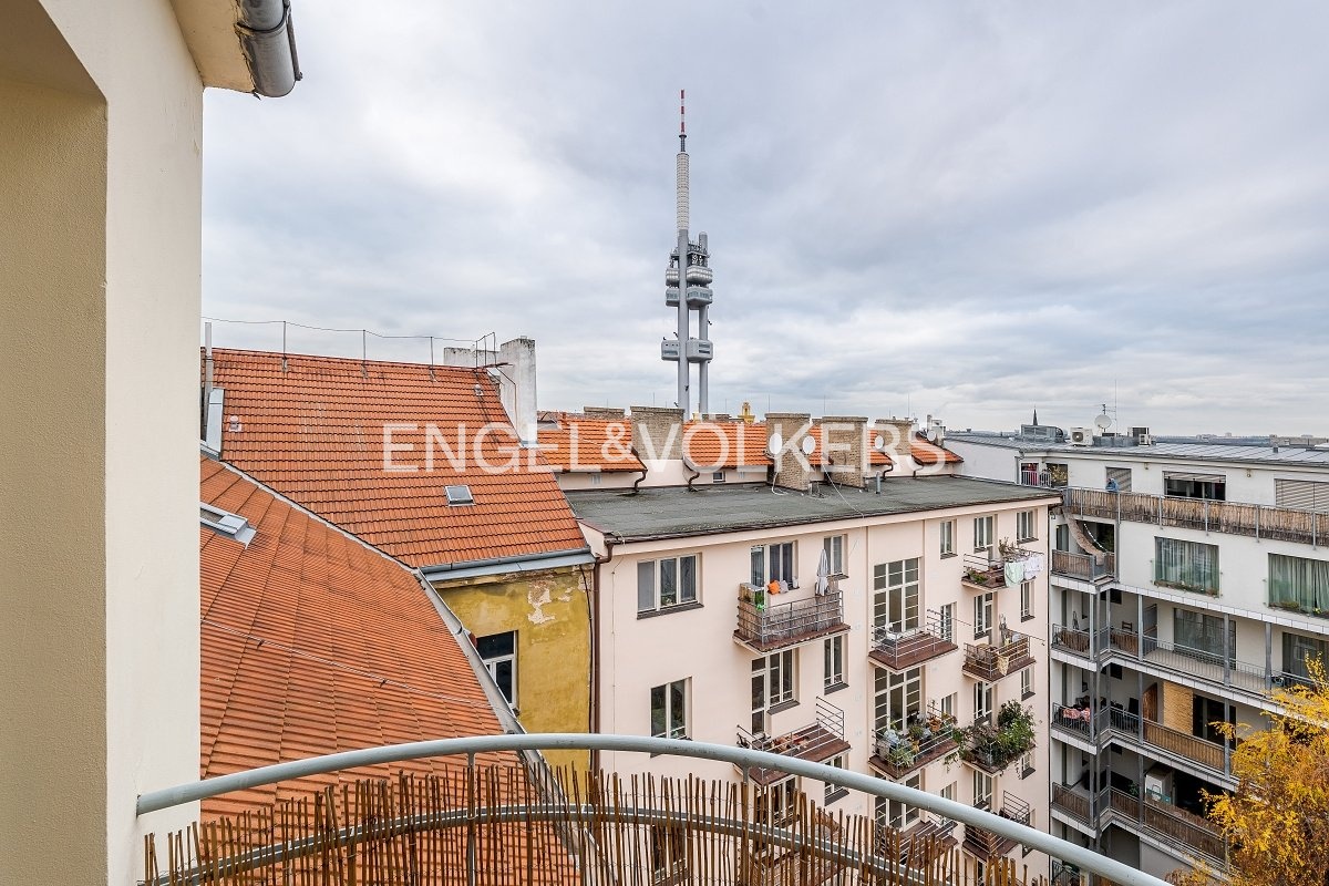 For rent from 2. 2. 2026, we offer a fully furnished loft apartment with a roof terrace of 90 sqm, two balconies and three bedrooms. The apartment is located on the 5th floor of an apartment building with an elevator on the border of Vinohrady and Žižkov, in a quiet location close to the metro Jiřího z Poděbrad and Flora.