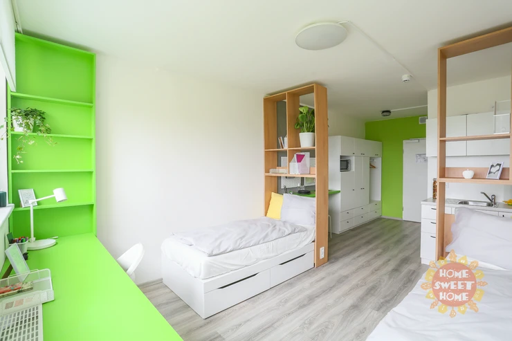 We offer for rent a shared student studio for two people in an 18 m² studio in a three-story residential building with an elevator on Kotlaska Street, Prague 8 - Palmovka. This location stands out for its excellent transport accessibility. The residence provides many common areas for use. Suitable especially for students.