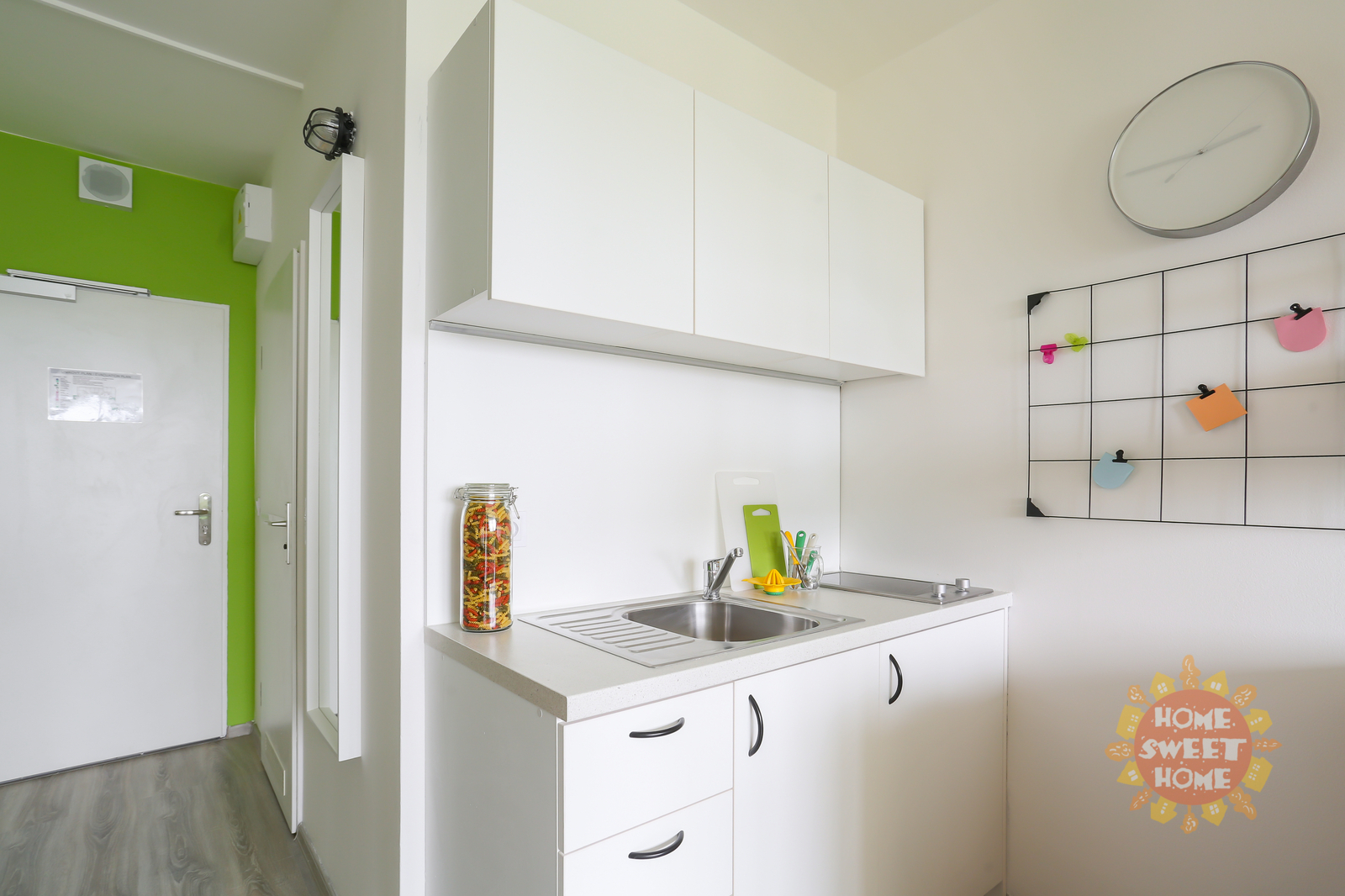 The residence offers plenty of opportunities for leisure activities, socializing, and community building. The building has a fitness center (equipped gym and outdoor fitness facilities), a recording and music room, a games room with a ping-pong table and billiards, outdoor barbecue, laundry room (for an additional fee), and a spacious shared kitchen with a dining area. This accommodation is an ideal choice for students looking for quality and affordable accommodation close to schools and other important locations in Prague. The residence is located just 5 minutes from the Palmovka metro station (line B).
