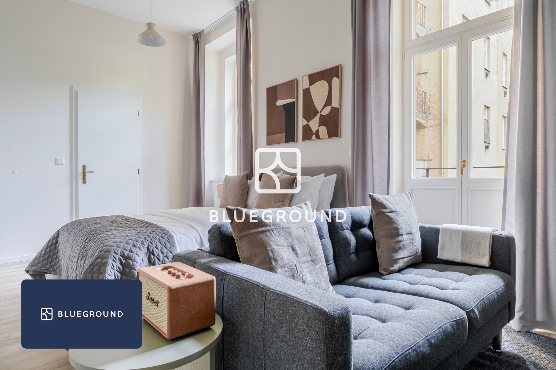Blueground offers a fully furnished studio apartment in the sought-after Holešovice district, available for stays of one month or longer. Located in Prague 7, this well-connected and evolving neighborhood combines residential calm with vibrant city life. The apartment is ideally situated near parks, cafés, and cultural spaces, offering quick access to the city center while maintaining a peaceful local vibe. With its modern amenities and spacious layout, this home is a great choice for professionals, couples, or small families looking for comfort, style, and convenience in one of Prague’s trendiest districts.