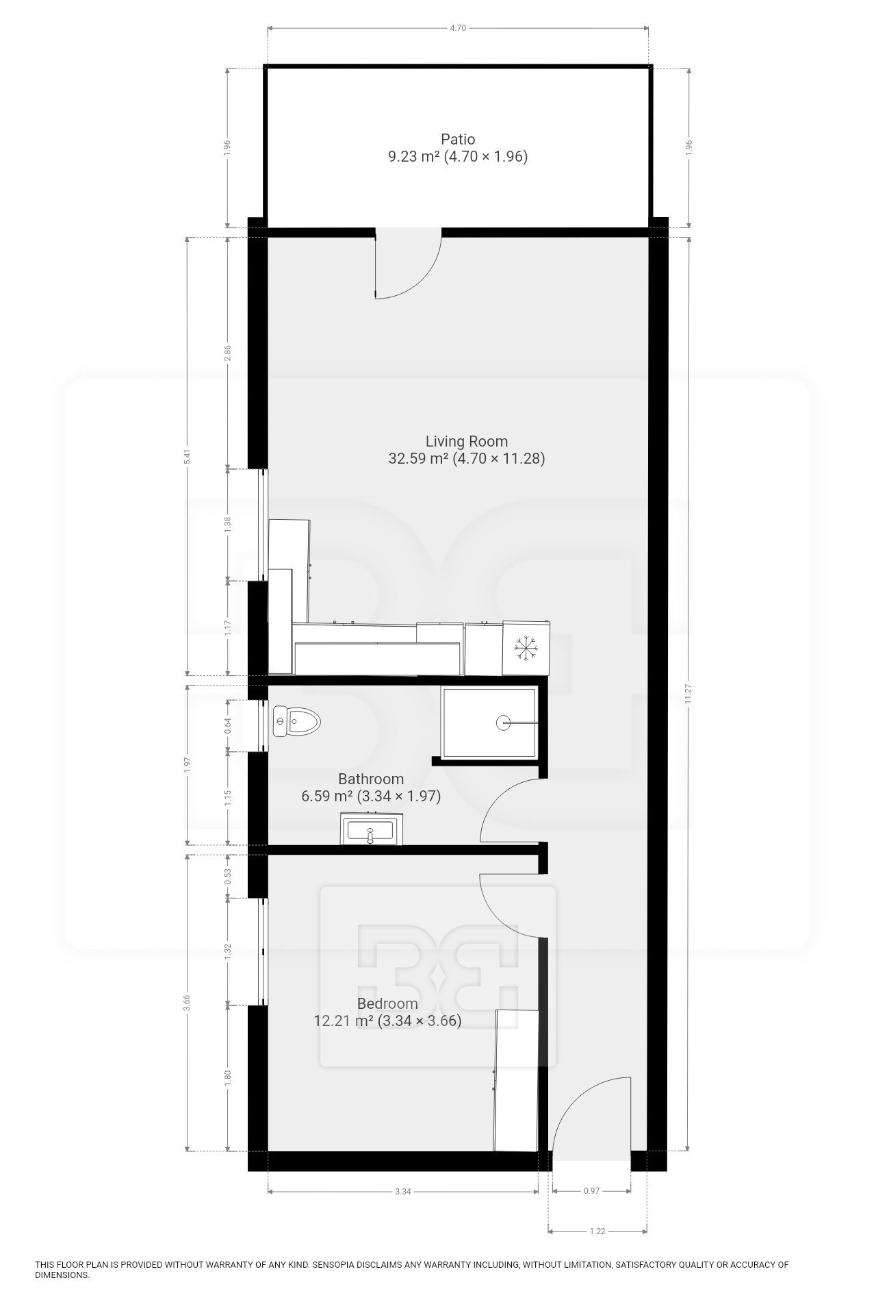 • Separate bedroom with wardrobe
