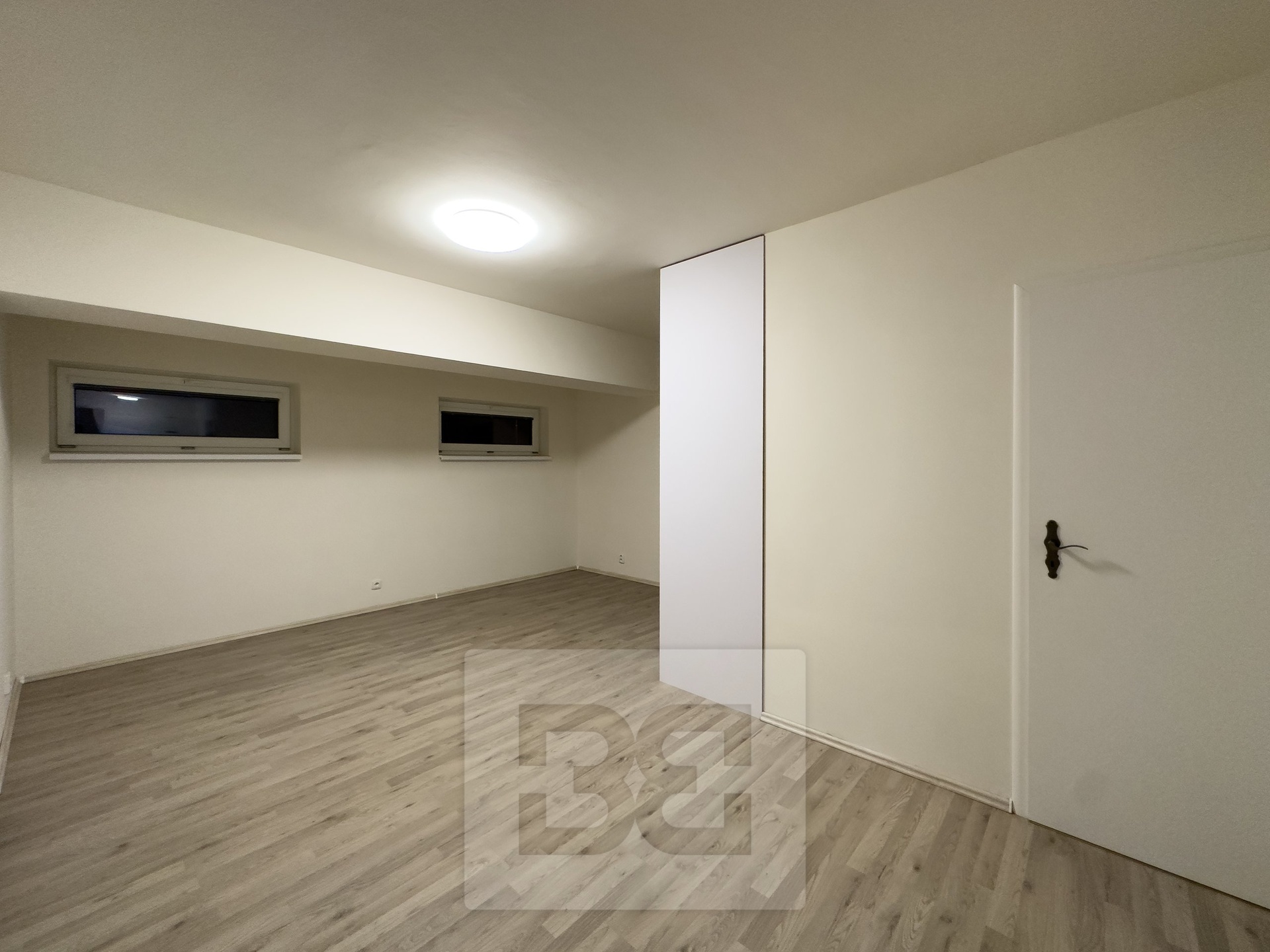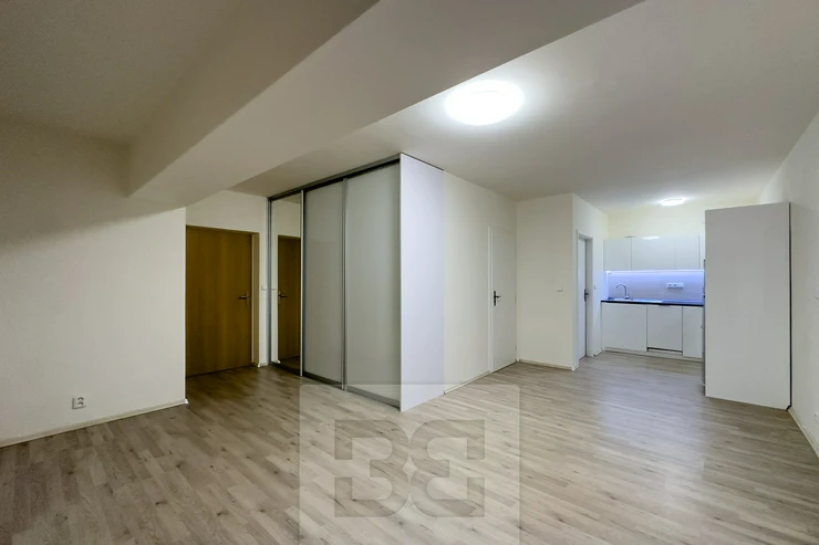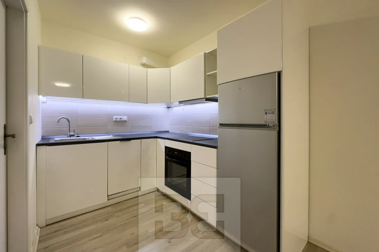 We are exclusively offering you a beautiful, completely renovated 2+kk apartment with an area of 39 m² + approx. 30 m² garden on the ground floor of a three-story villa in a quiet green location in Prague - Hostavice for long-term sublease. The apartment is equipped with a new modern kitchen with appliances. The apartment consists of a spacious living room with a kitchenette, a bedroom, and a bathroom with a toilet. The kitchen is equipped with a dishwasher, refrigerator, hob, and oven. There is a washing machine in the apartment. A shared storage room is available for storing belongings.