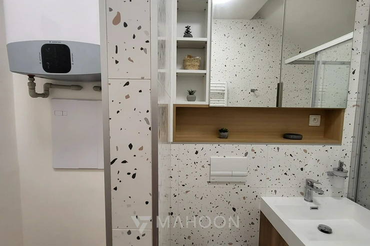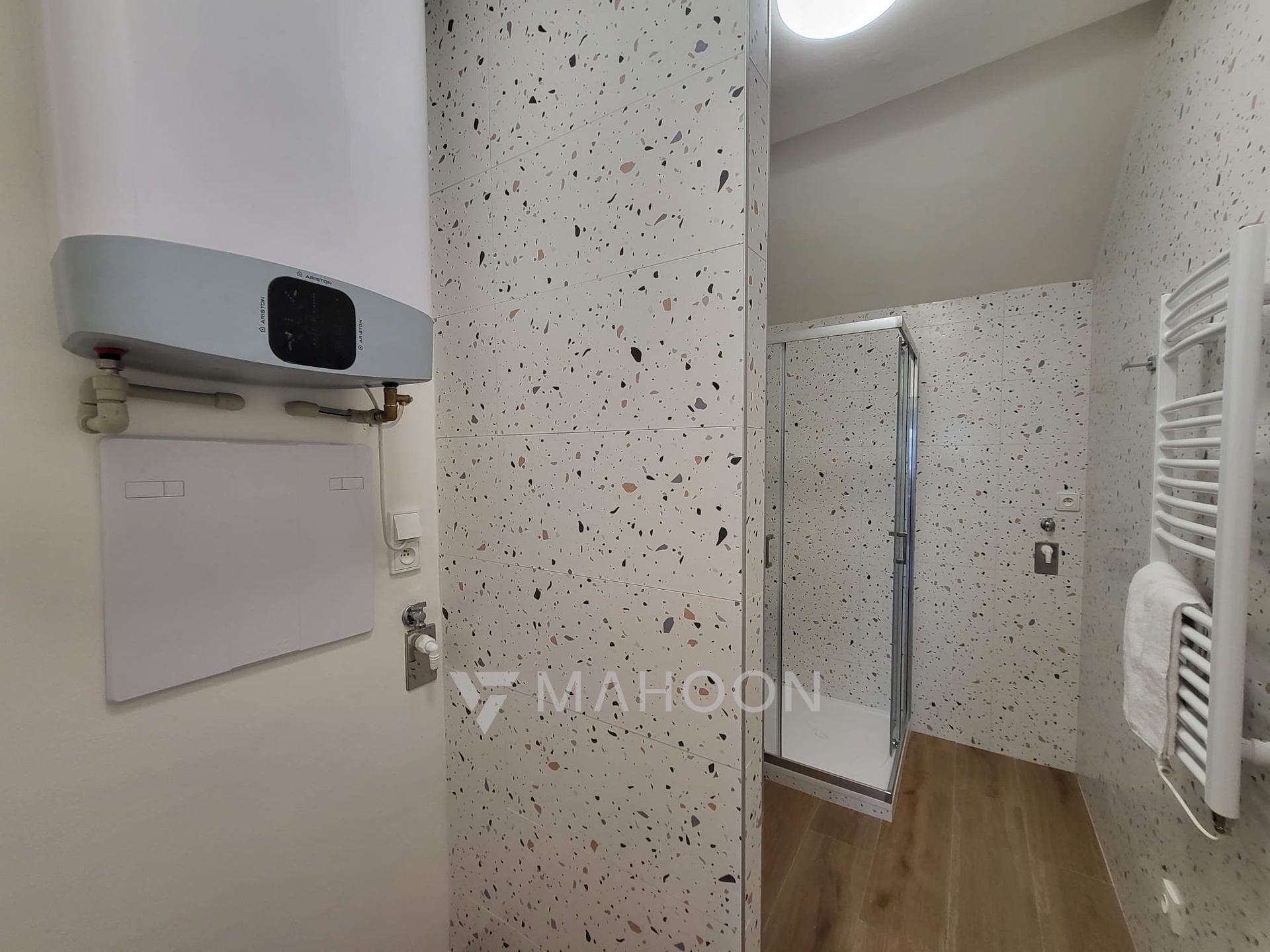 • novou stylovou koupelnu se sprchovým koutem, závěsným WC, topným žebříkem, designovým bojlerem a pračkou,