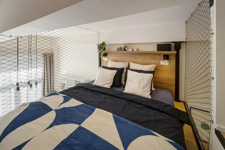 A stylish loft studio with over 3-meter-high windows feels more like your own private art gallery than just an apartment.