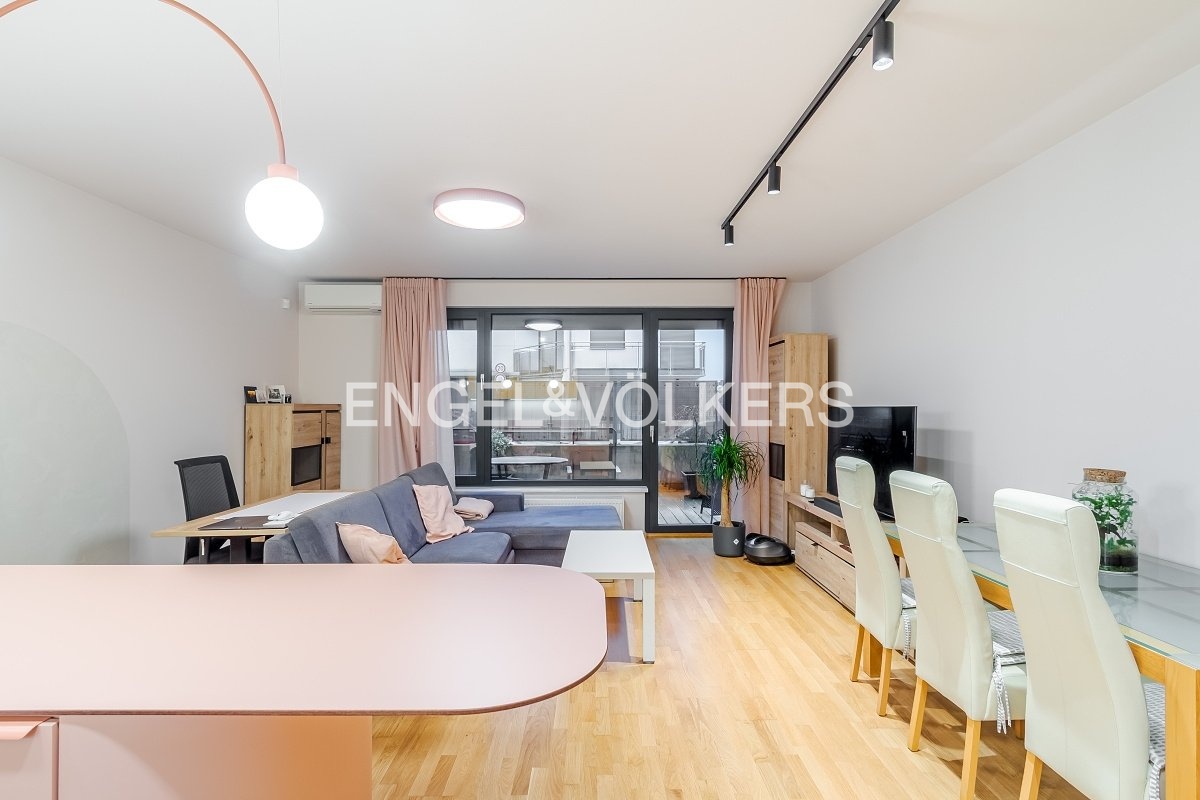 We offer for long-term rent a bright and fully furnished 2-kt apartment with a usable area of 71 sqm (total 90 sqm) with a terrace, balcony, garage parking space, and cellar. The apartment is located on the 1st floor of the modern residential project Rezidence Závěrka (approved in 2012) in one of the most attractive parts of Prague 6 – Břevnov.