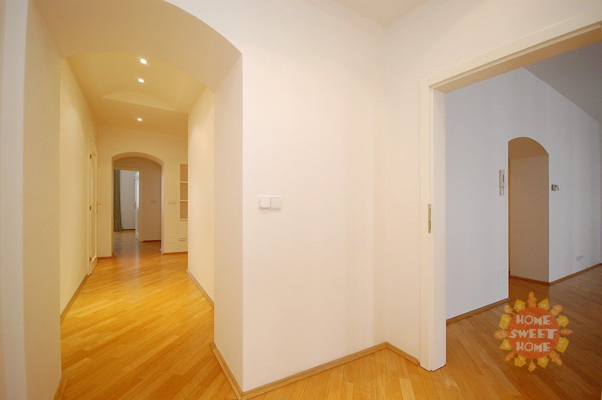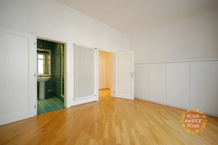 We offer for rent a spacious 3+1 apartment with a total area of 104m2, located on the third floor of a brick building with an elevator in Odborů Street, Prague 2. The apartment has two main entrance doors (the apartment can therefore be divided into living and office space). It is a spacious home with high ceilings. There are parquet floors, the apartment is newly painted and unfurnished. There is an entrance hall, utility room with gas boiler, kitchen, spacious living room, 3 bedrooms, 2 dressing rooms and 2 bathrooms with toilet, bathtub and shower. Two bedrooms are located in a very quiet courtyard. Telephone and internet connection can be arranged at your own expense. The kitchen is equipped with a dishwasher, a washing machine with a dryer, a microwave, a stove and a refrigerator with a freezer.