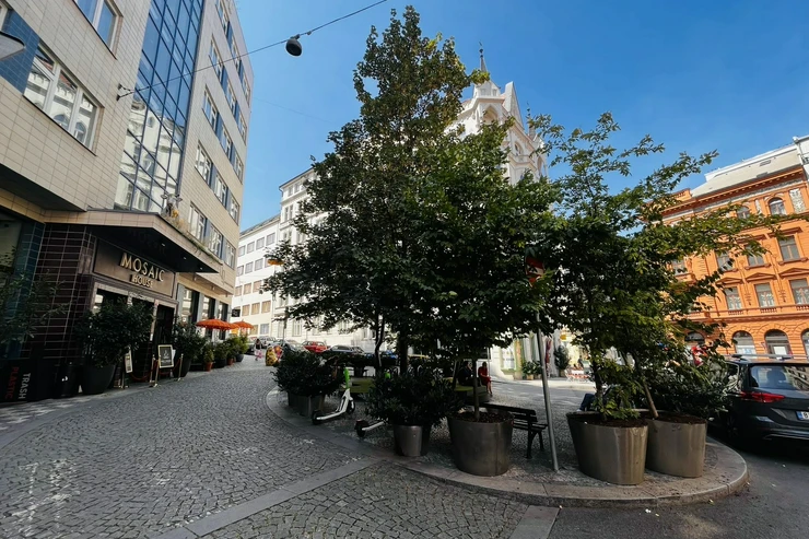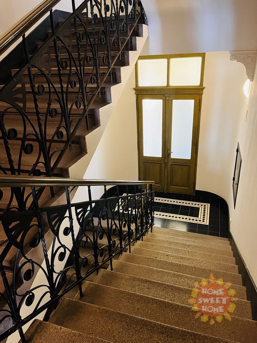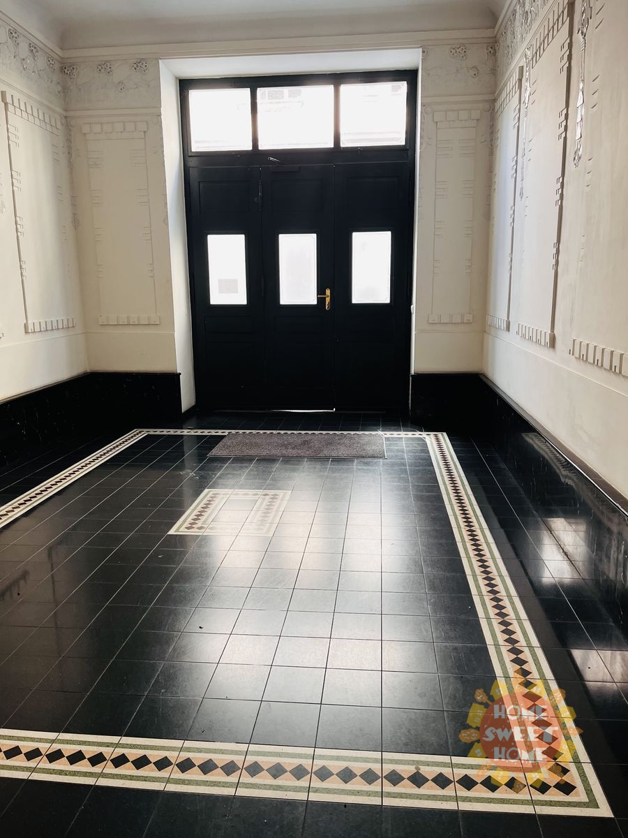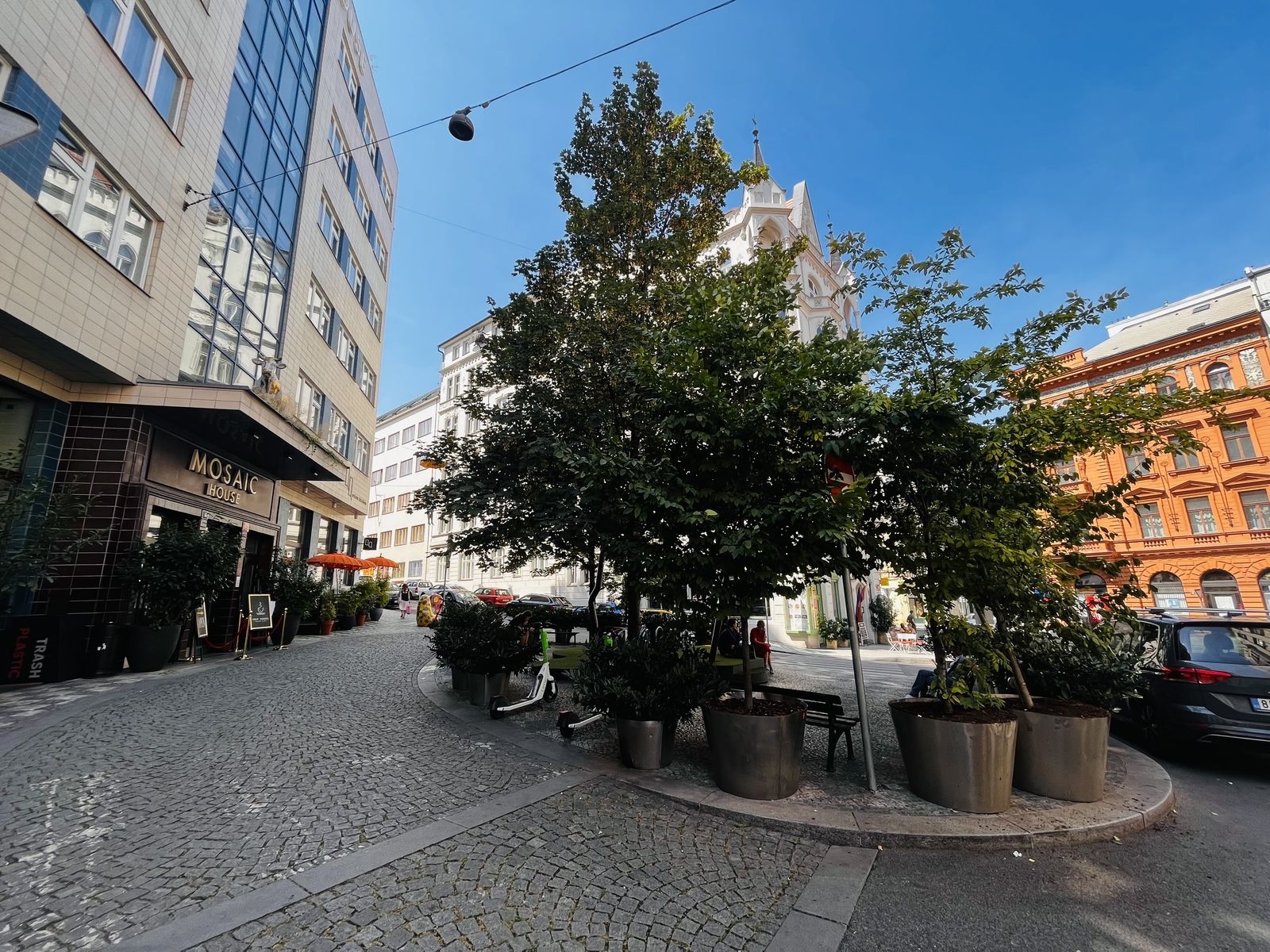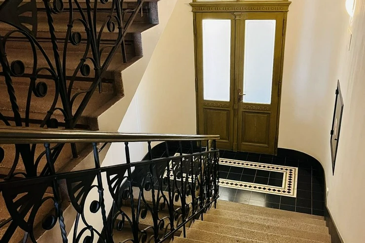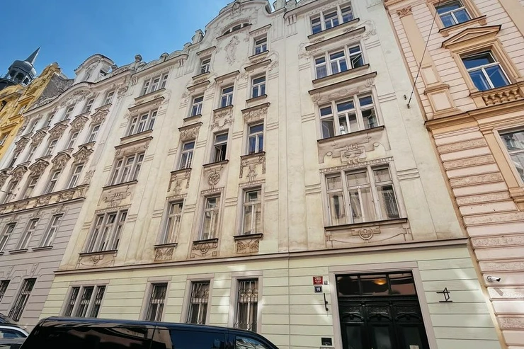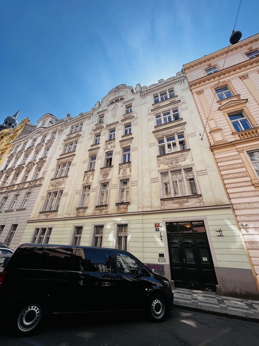 There is an excellent transport connection: a 3-minute walk to the metro station "Karlovo náměstí" or the tram stop "Novoměstská radnice". In the vicinity you will find complete civic amenities: many restaurants, shops, cafes, post office, pharmacy, playgrounds, the General Faculty Hospital, the Mánes exhibition hall, primary and secondary schools and much more. Parking is possible in the blue zone directly in front of the house.