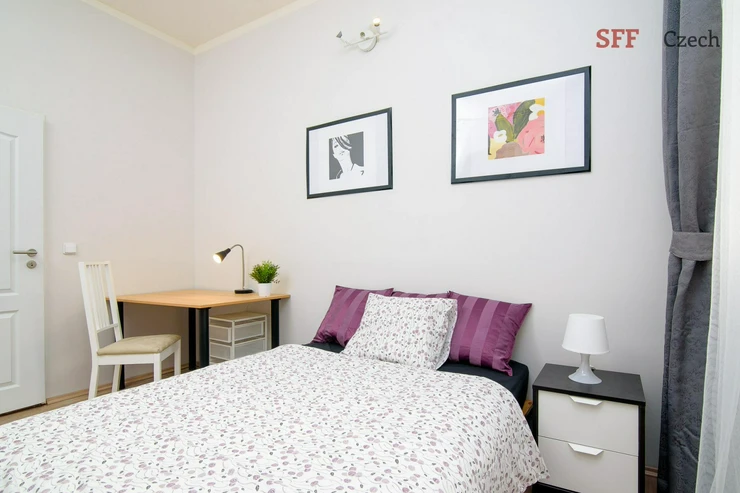 No commission! Available January 2, 2026. We offer a fully furnished room no. 8030 for rent in a spacious shared apartment located in the popular district of Prague 8 Karlín, just a few minutes walk from Florenc metro station (lines B and C) and Křižíkova street. Available for both short-term (minimum 3 months) and long-term rental.