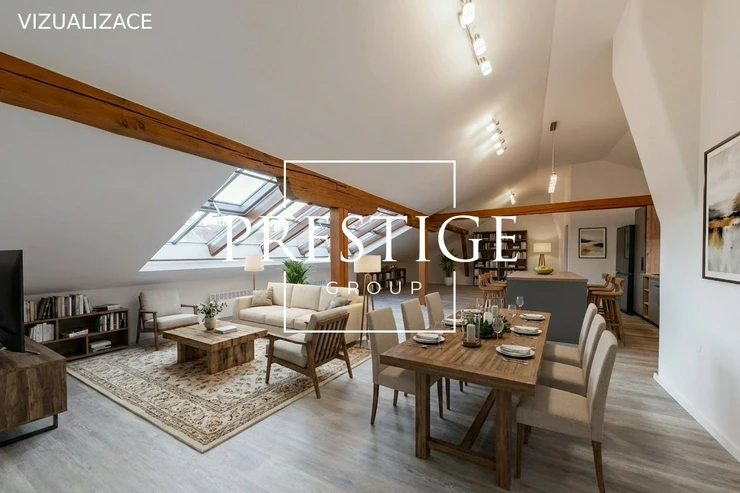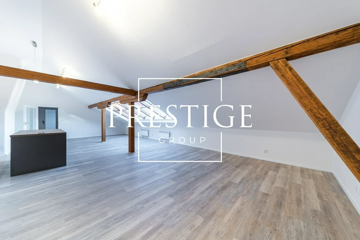 PRESTIGE GROUP offers for rent a spacious 3+kk attic apartment with a usable area of 126 m², located on the fifth floor of a brick building at Navrátilova, Prague. The apartment has just undergone renovation and is ready to move in.