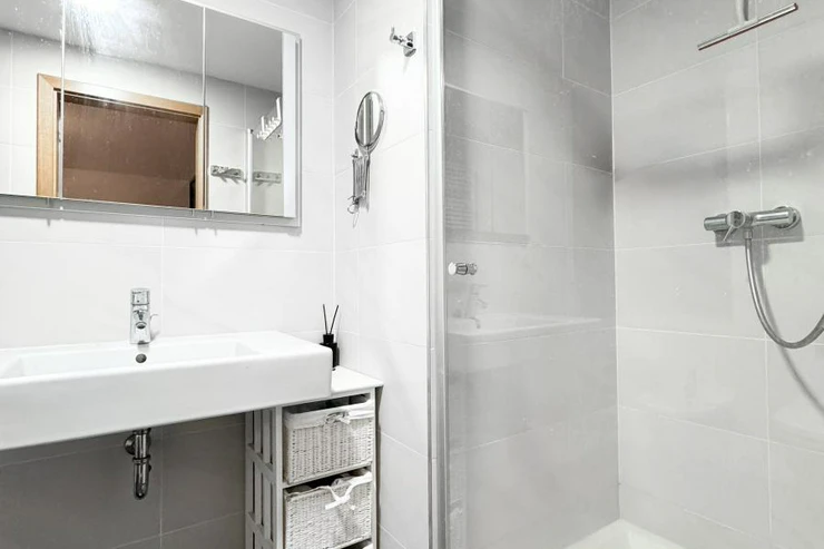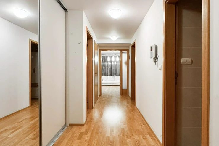 Vybavení zahrnuje klimatizaci, venkovní žaluzie, dřevěné podlahy a kvalitní keramickou dlažbu v koupelnách. Kuchyň je kompletně vybavená moderními vestavěnými spotřebiči.