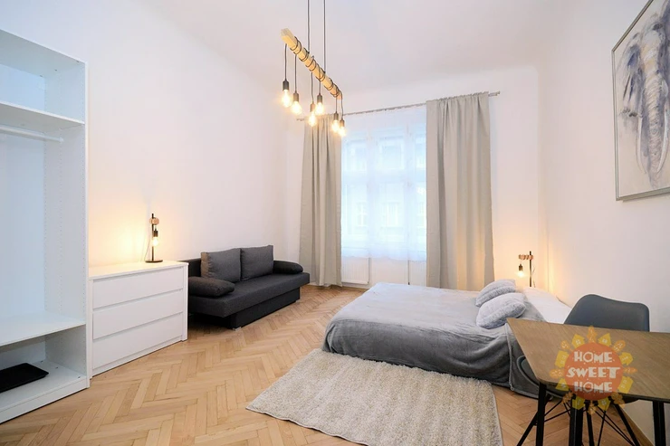 We offer for rent a separate room with a kitchenette and a dining area. The room is fully furnished with modern furniture and is lockable. There are 3 rooms in the apartment, which have a shared common hall and bathroom with a shower + separate toilette. The apartment is located in a very attractive location – Prague 6, Bubenec, street Čs. army and its total area is 28 sqm.