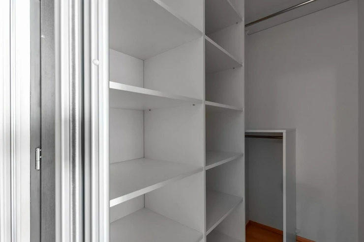 A built-in wardrobe with plenty of storage space is installed in the hallway. The apartment has laminate floating floors, plastic windows and a security entrance door. The apartment is rented partially furnished.