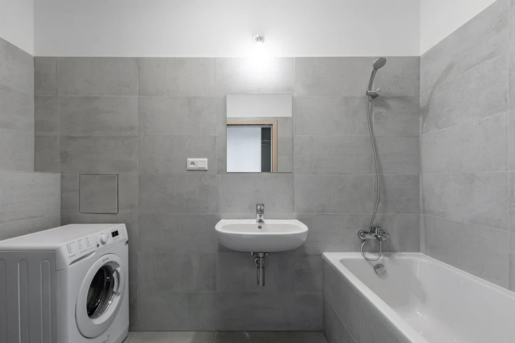 The apartment with a total area of 32 m is located on the 4th floor and also includes a cellar. The layout includes a bright living space with a new built-in kitchen of a higher standard including quality appliances. The bathroom is equipped with a bathtub and a washing machine, the toilet is part of the bathroom.
