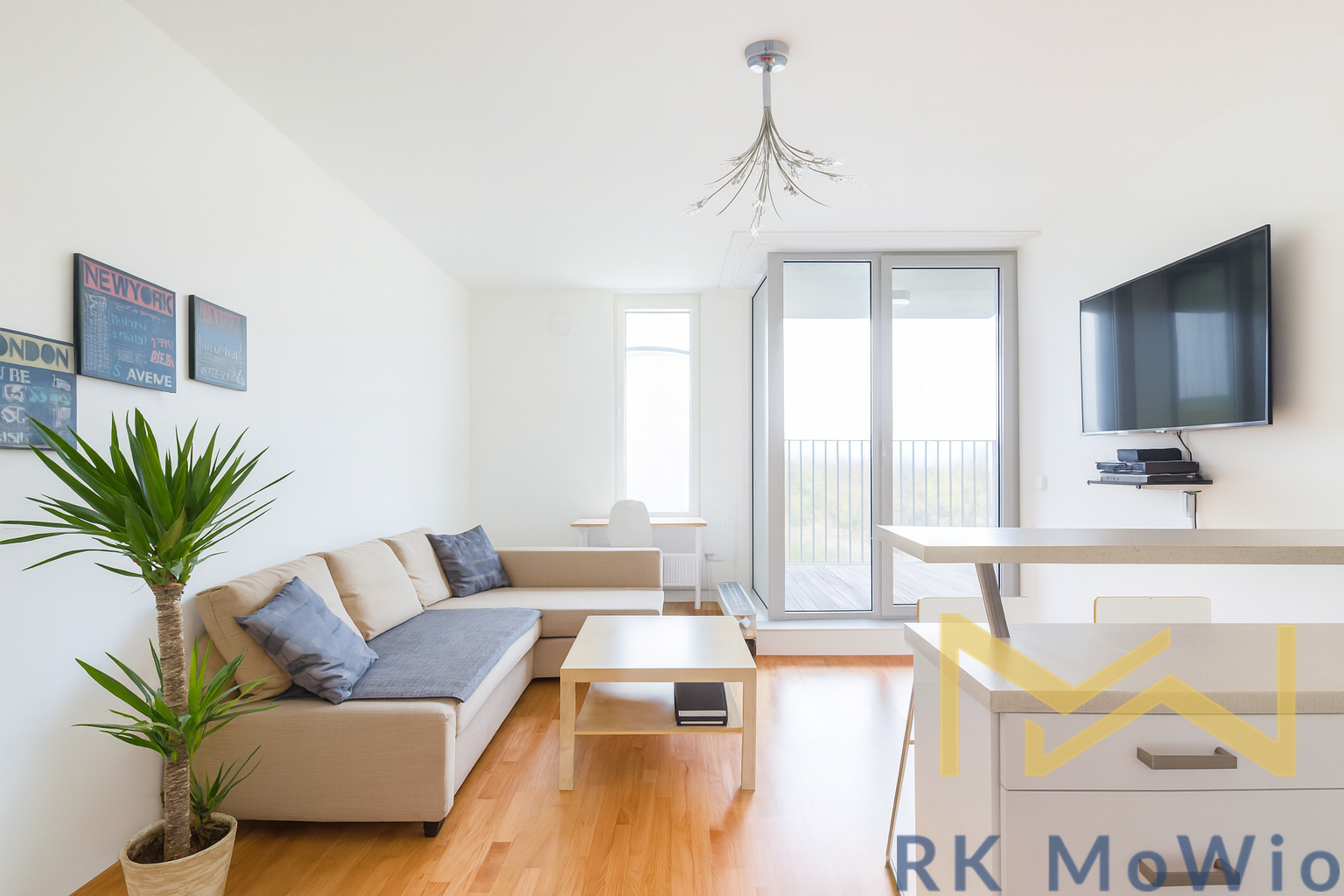 We offer for rent a furnished 1-bedroom apartment with a floor area of 56 sqm and a 3.9 sqm terrace, located on the 2nd floor (3rd above-ground level) of a modern building with an elevator in the Sacre Coeur Residence, on Švédská Street in Prague 5 – Smíchov.