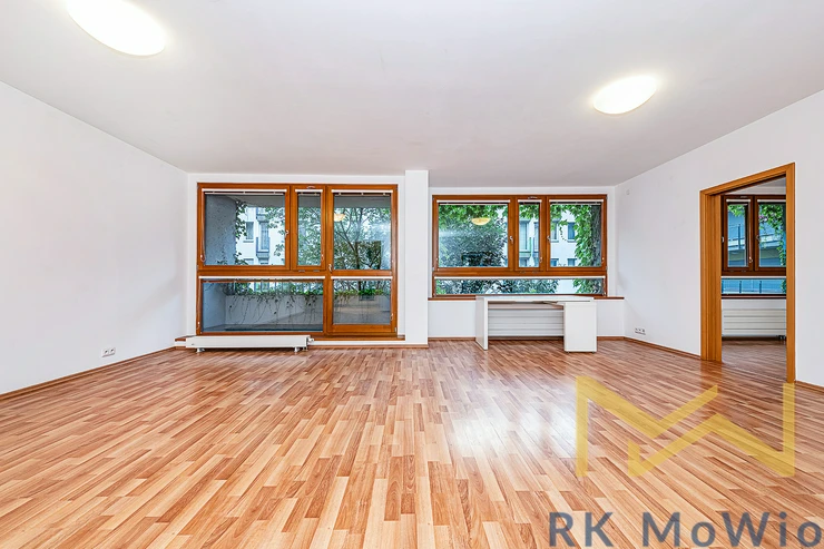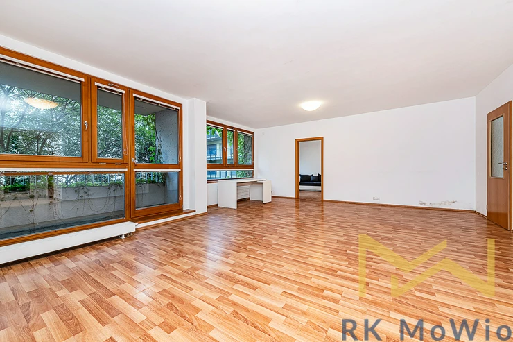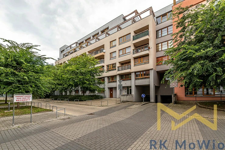 We offer for rent a spacious unfurnished 1-bedroom apartment with a floor area of 70 sqm. with a balcony, located on the 1st floor (2nd above-ground floor) of a modern building with an elevator in Randova Street, Prague 5 – Smíchov.