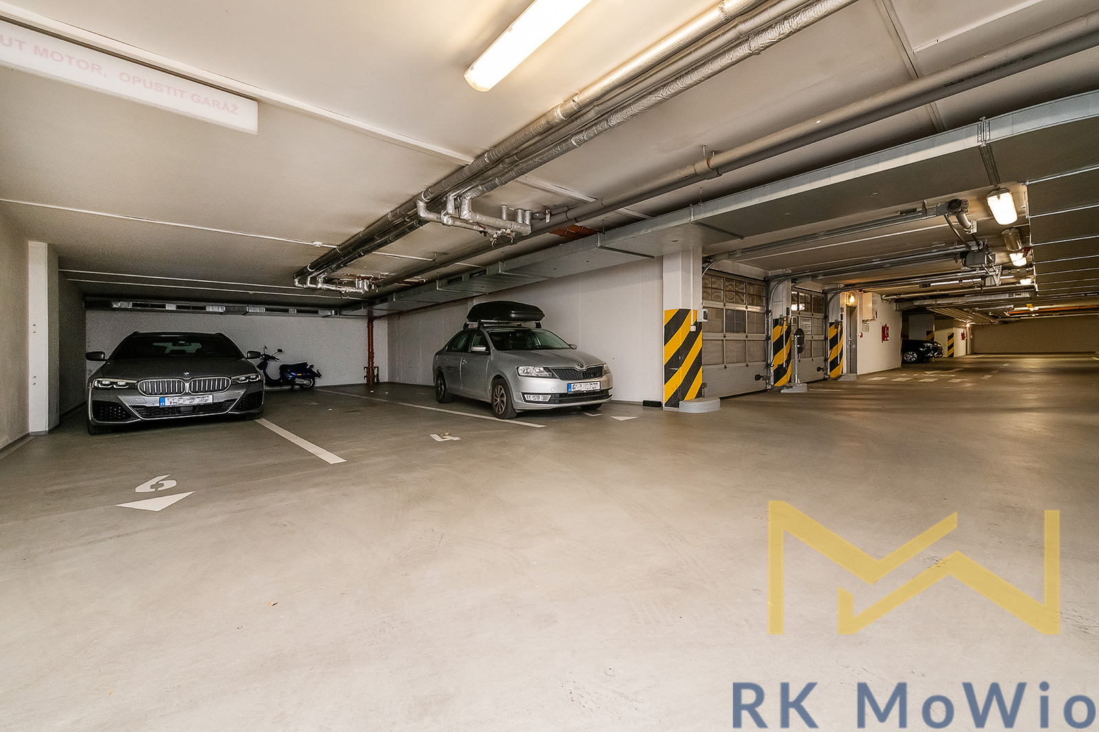 Apartment features: kitchen unit (including oven, refrigerator, freezer, and dishwasher), preparation for high-speed internet, laminate floors and tiles. A cellar is included in the rent. Option to rent two parking spaces in tandem for an extra CZK 1,500/month each.