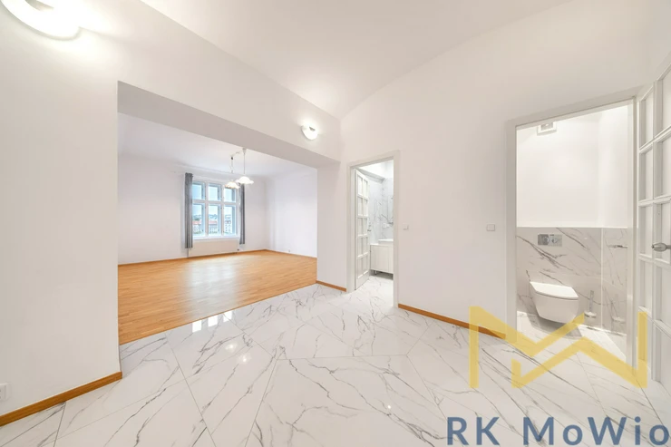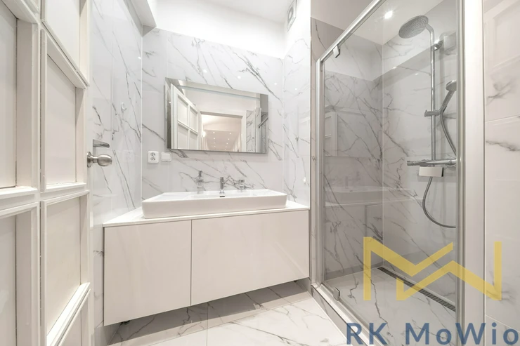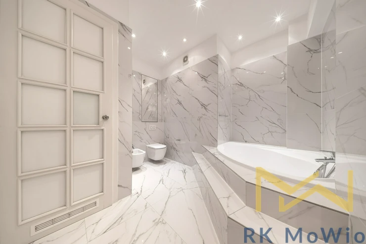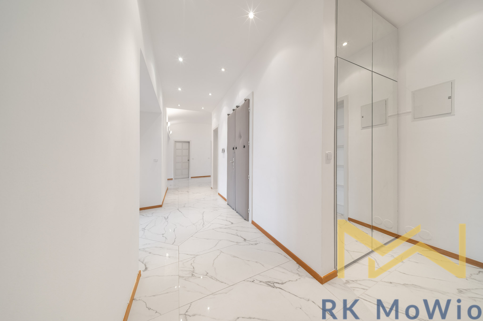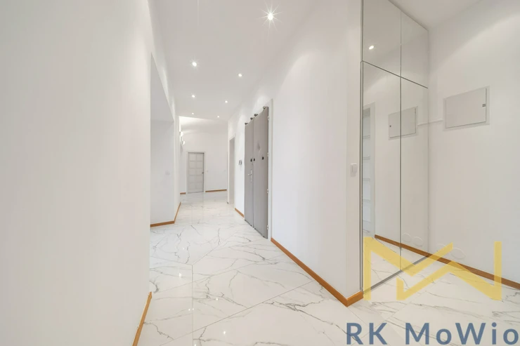 The apartment’s layout includes an entrance hall, a bright living room, a kitchen with a dining area, 4 bedrooms, and 2 bathrooms. The apartment is equipped with a kitchen unit (including a fridge with freezer, ceramic hob, extractor hood, dishwasher, microwave, and electric oven), built-in wardrobes, connections for a washing machine and dryer, and for high-speed internet, wooden floors, and tiles. Parking space can be rented for an additional fee.