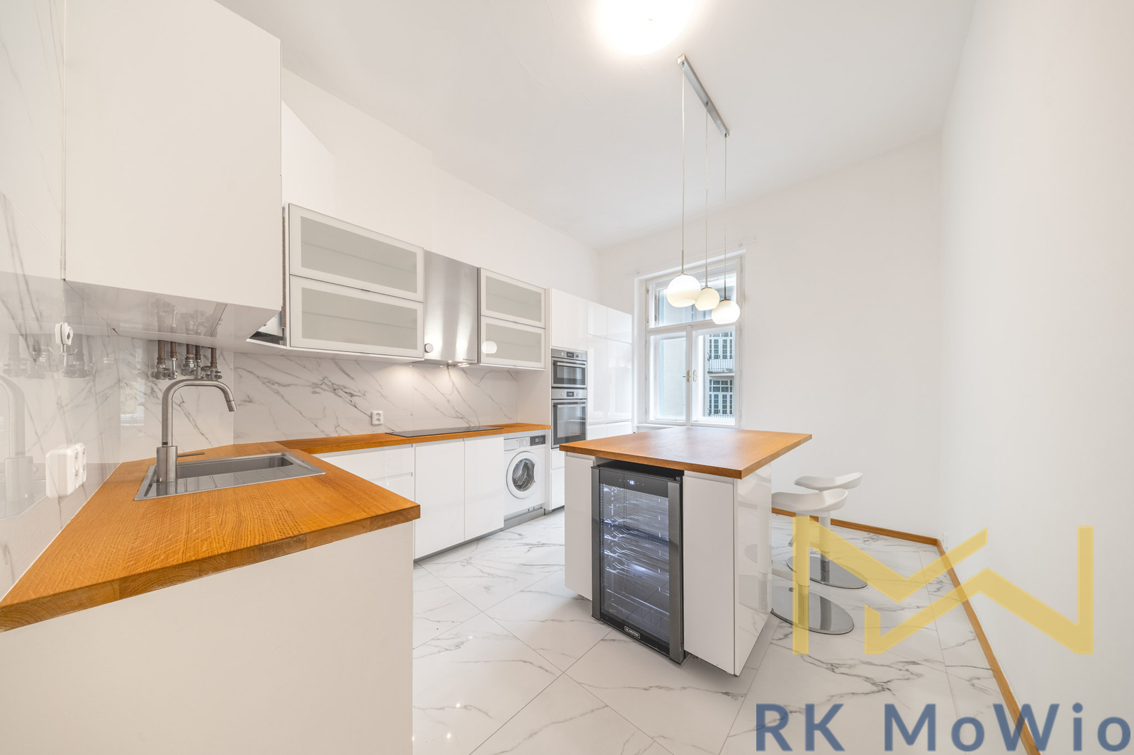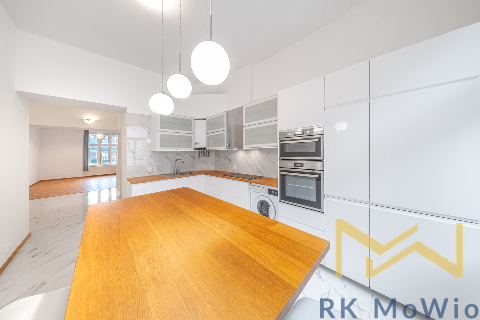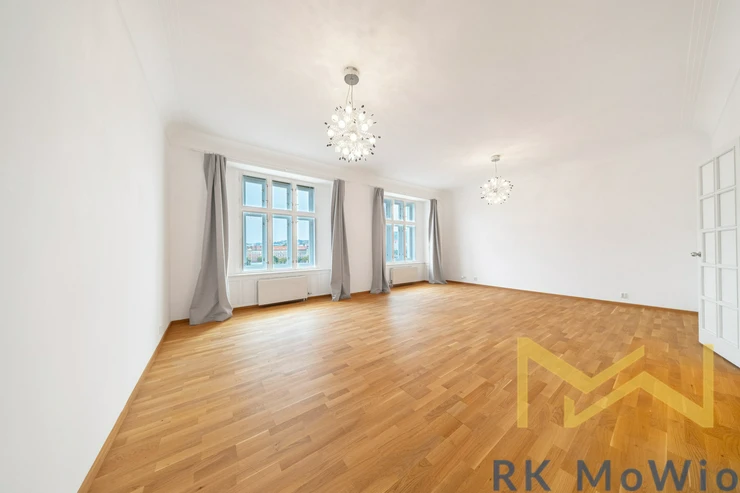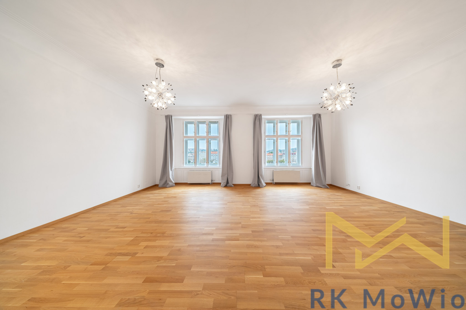 We offer for rent an unfurnished apartment with 4 bedrooms and a floor area of 200 sqm., located on the 2nd floor (3rd above-ground floor) on Rašínovo nábřeží Street in Prague 2 – New Town.