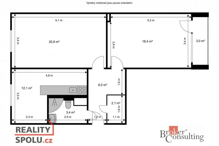 Součástí je balkón (3 m²), sklep (2 m²) a zajištěné parkování. Internet v domě k dispozici.